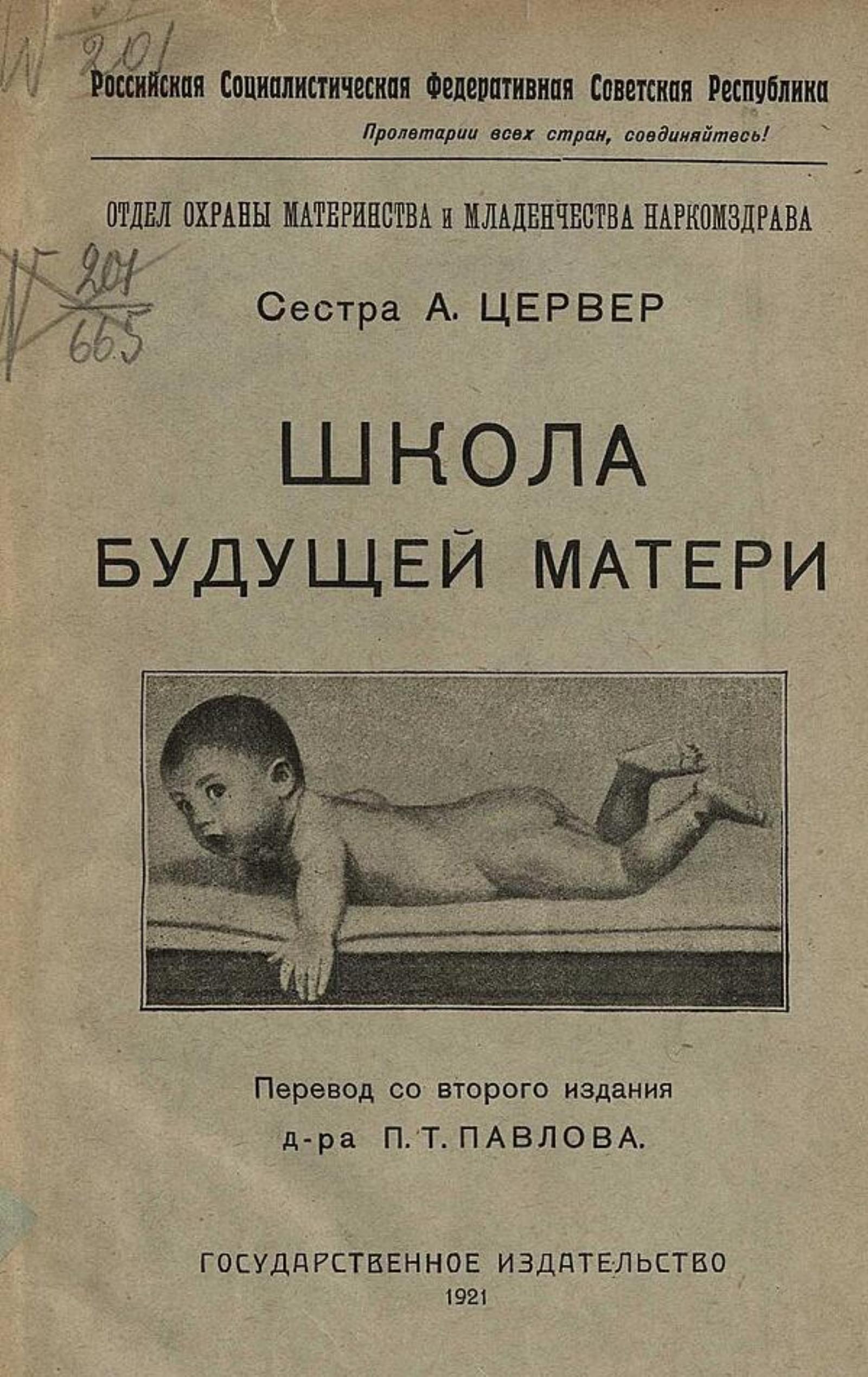 Цервер, А. Школа будущей матери / Сестра А. Цервер Пер. со 2-го изд. д-ра П. Т. Павлова Предисл. д-ва Н. И. Лангового Рос. соц. фед. сов. респ. [Отд. охраны материнства и младенчества Наркомздрава]). — [Москва] : Гос. изд-во, 1921. — 63 с. : ил.; 23 см.