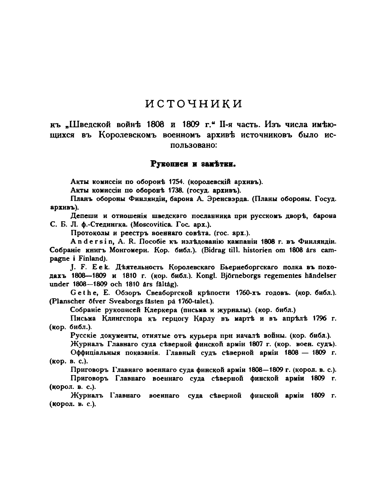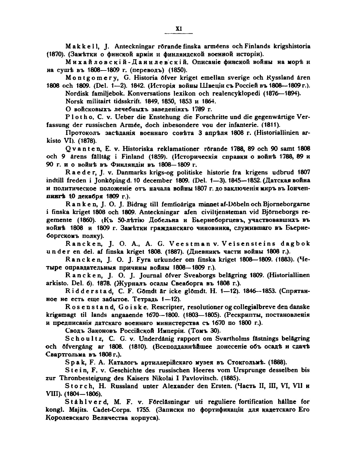 Перевод на русский язык исследования , подготовленного Историческим отделом Шведского генерального щтаба, сделан группой офицеров Российского Генштаба и Финляндского военного округа под руководством полковника А.М. Алексеева «Трудность шведского языка и малое его распространение вообще, а в России в частности, делало этот труд до сего времени недоступным для огромного большинства русских военных читателей и исследователей, между тем как война Швеции с Россией в 1808 1809 гг., приведшая к окончательному покорению и присоединению Финляндии к России, нашими историками мало исследована и разработана.Имея задачей быть возможно ближе к подлиннику, переводчики старались передать шведский труд со всем присущим ему тенденциозным освещением и представить его без каких либо комментариев с русской стороны» В издании воспроизводится множество редких документов из шведских собраний