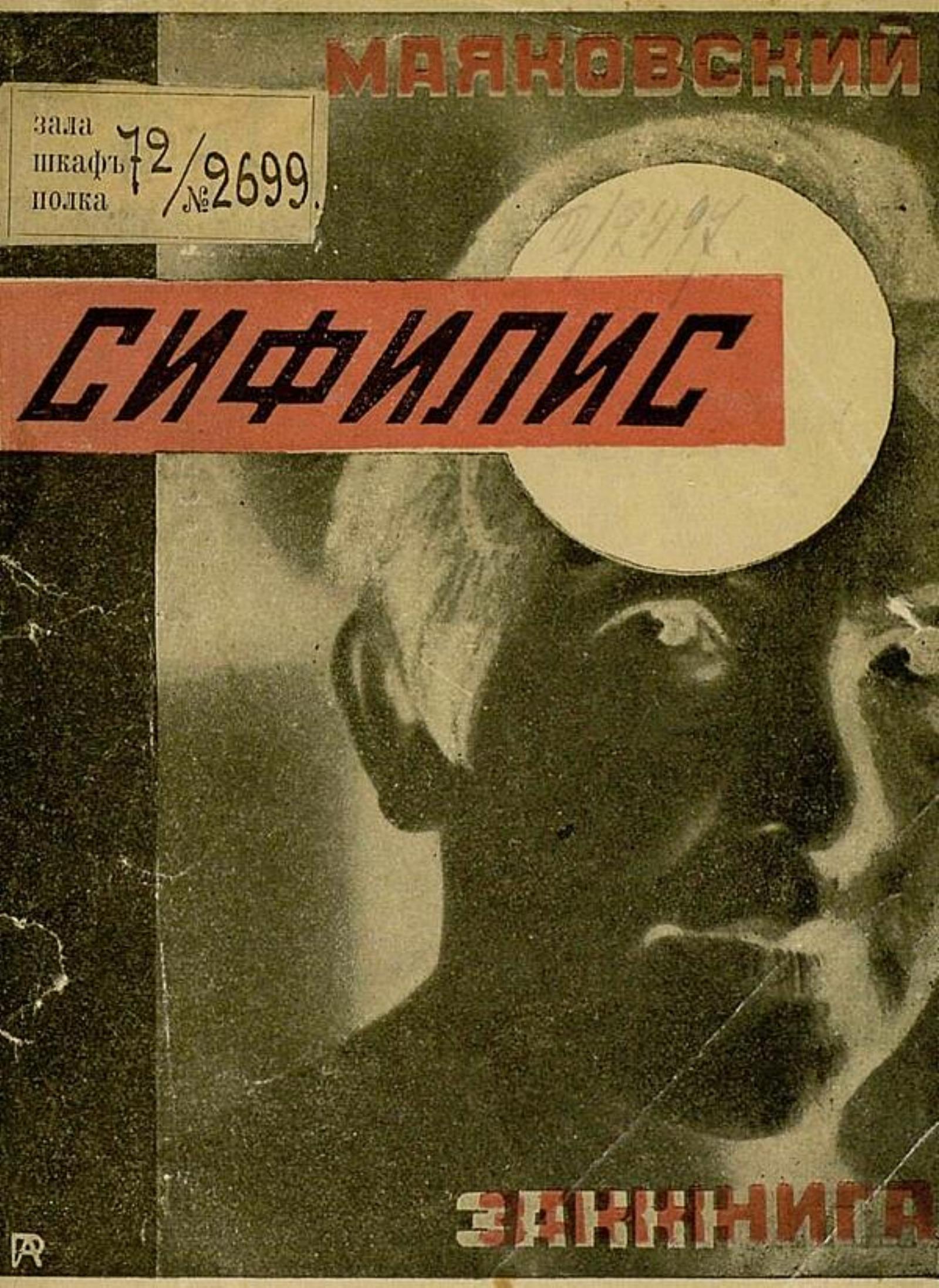 Маяковский В. В. Сифилис [Стихотворение] / В. Маяковский; Обл. и монтаж А. Родченко. — [Тифлис] : Заккнига, 1926. — 15 с. ил.; 19 см.