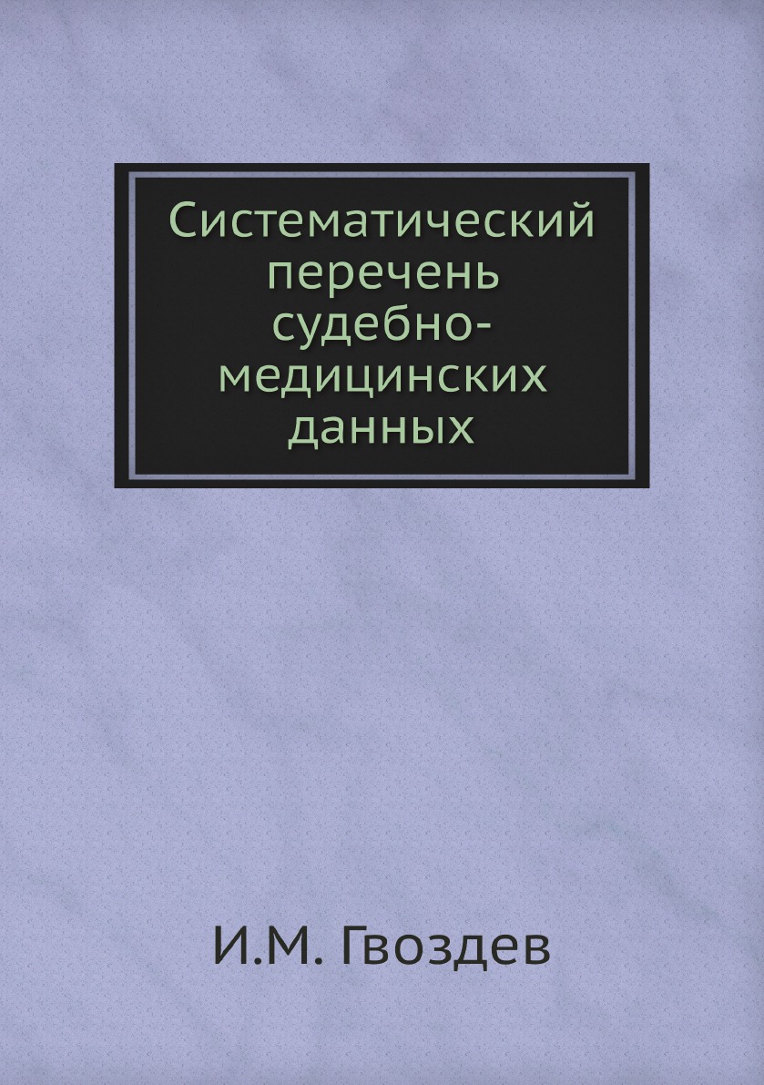 Печатная книга «Систематический перечень судебно-медицинских данных» в мягкой обложке, язык - русский. В книге 84 страниц, она напечатана на белой офсетной бумаге плотностью 80 г/м². Формат издания — 148x210 мм. Все книги аккуратно упаковываем в прочный трёхслойный непрозрачный картонный конверт.
