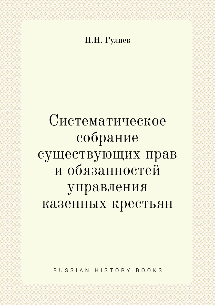 Систематическое собрание существующих прав и обязанностей управления казенных крестьян губернского, волостного и сельского. Составленное контролером Рязанской казенной палаты, титулярным советником Петром Гуляевым.