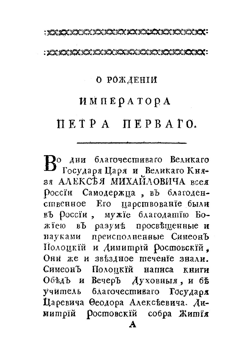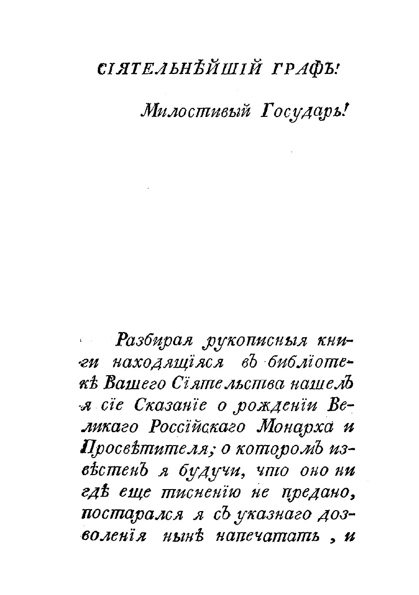 Сказание о рождении, о воспитании и наречении на всероссийский царский престол его царскаго пресветлаго величества государя Петра Перваго, находящееся в библиотеке его сиятельства графа Петра Борисовича Шереметева, изданное библиотекарем Васильем Вороблевским.