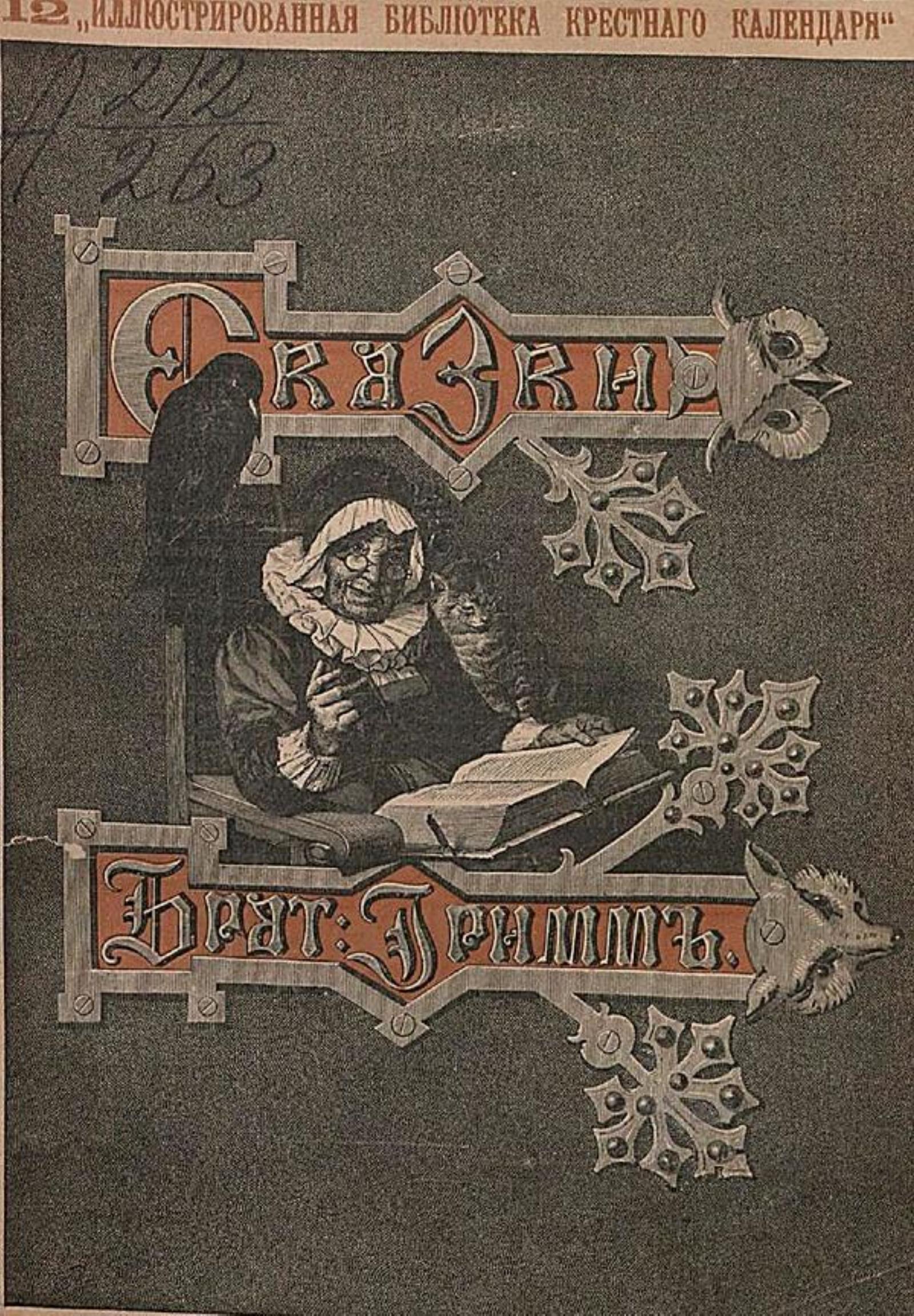 Гримм, Якоб. Сказки изложенные по сборнику бр. Гримм : [Вып.] 1-. — Москва : тип. В. А. Гатцук (Д. Чернышевский), 1893-1899. — 21 см. — (Иллюстрированная библиотека Крестного календаря). Вып. XII. — 1894.