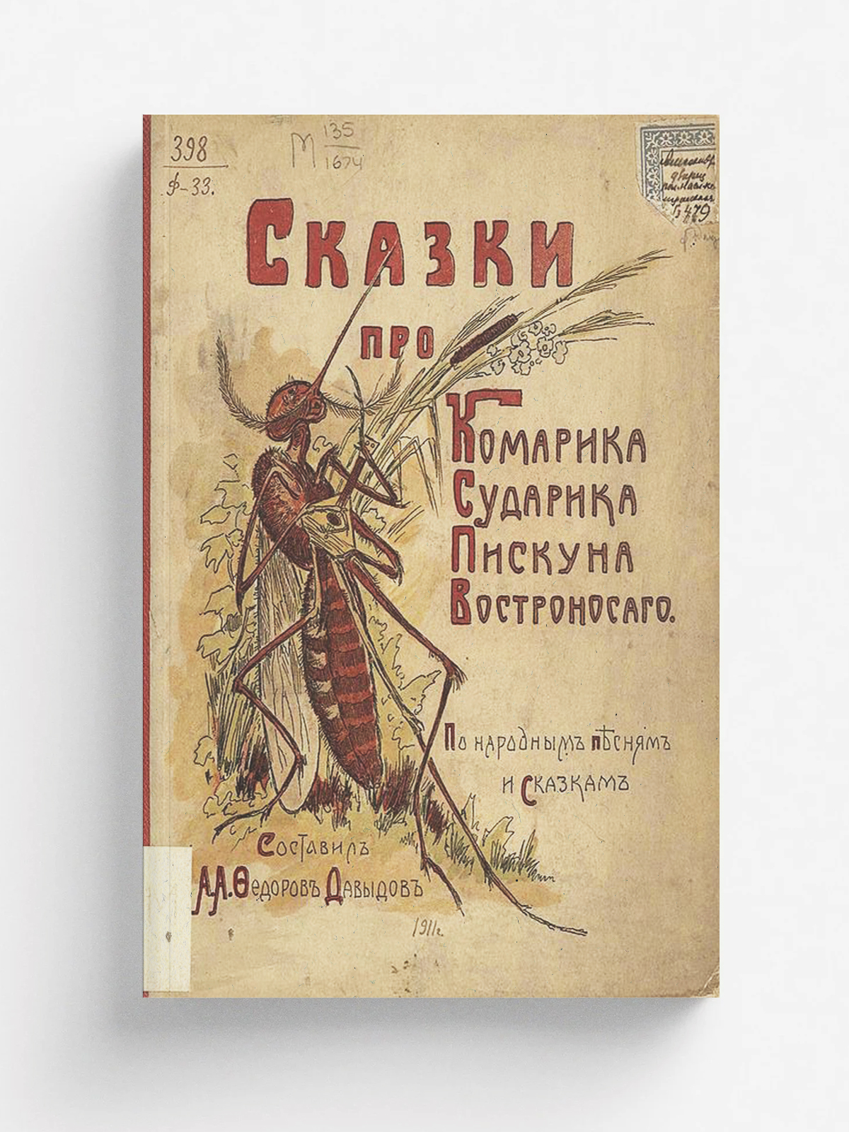 Сказки про Комарика сударика пискуна востроносаго : по народным песням и сказкам / составил А. А. Федоров-Давыдов. — [Б. м.] : [б. и.], 1911. — 15, [1] с. : цв. ил.; 23 см.
