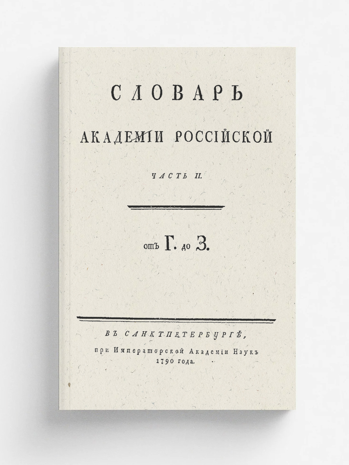 Словарь Академии Российской. — Санктпетербург : При Имп. Акад. наук, 1789–1794. — 4°. Часть 2. От Г до З. — 1790. — XIII с., 1200 стлб., [52] с.