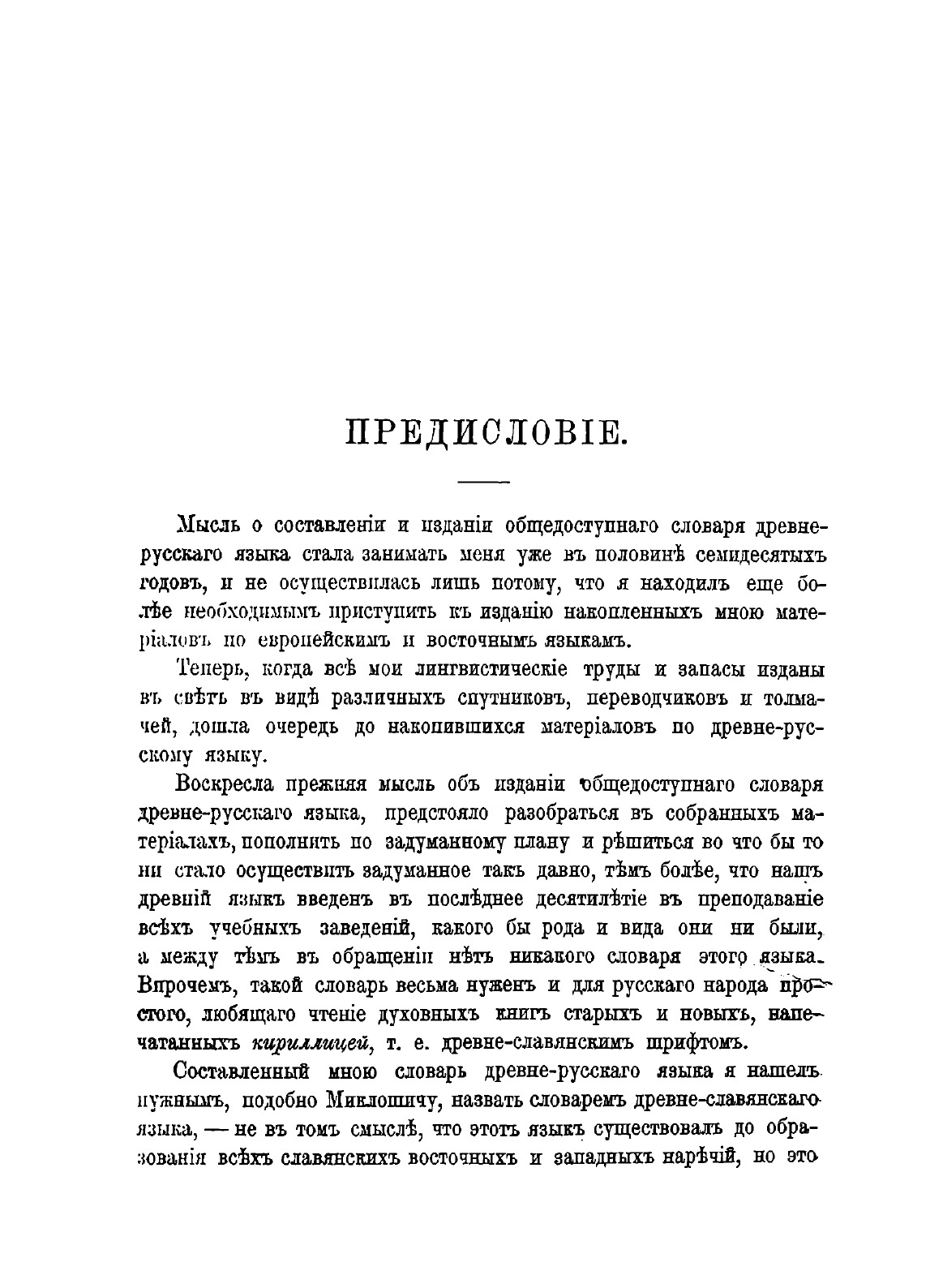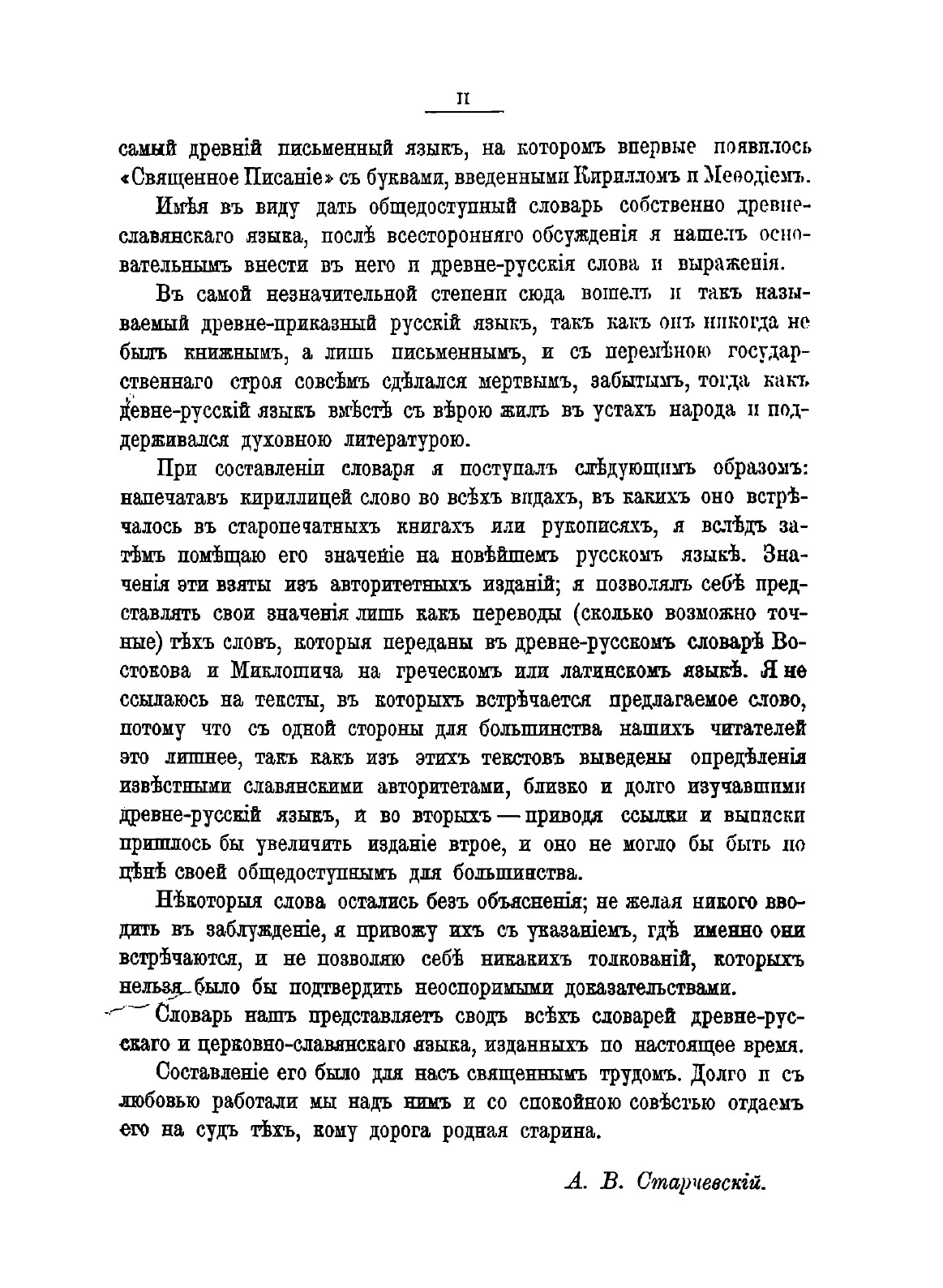 «Словарь наш представляет свод всех словарей древне-русского и церковно-славянского языка, изданных по настоящее время. Составление его было для нас священным трудом. Долго и с любовью работали мы над ним и со спокойной совестью отдаем его на суд тех, кому дорога родная старина».