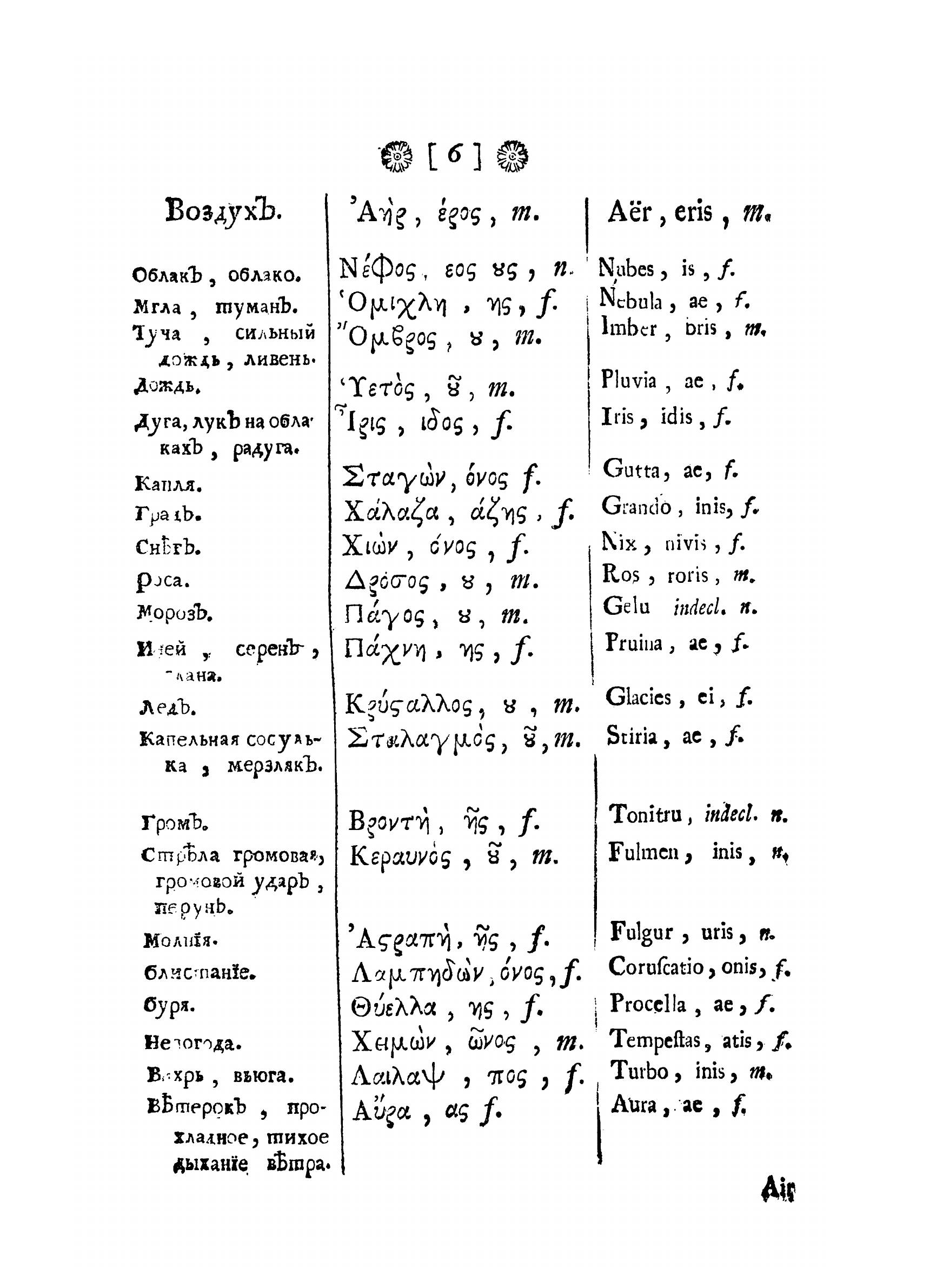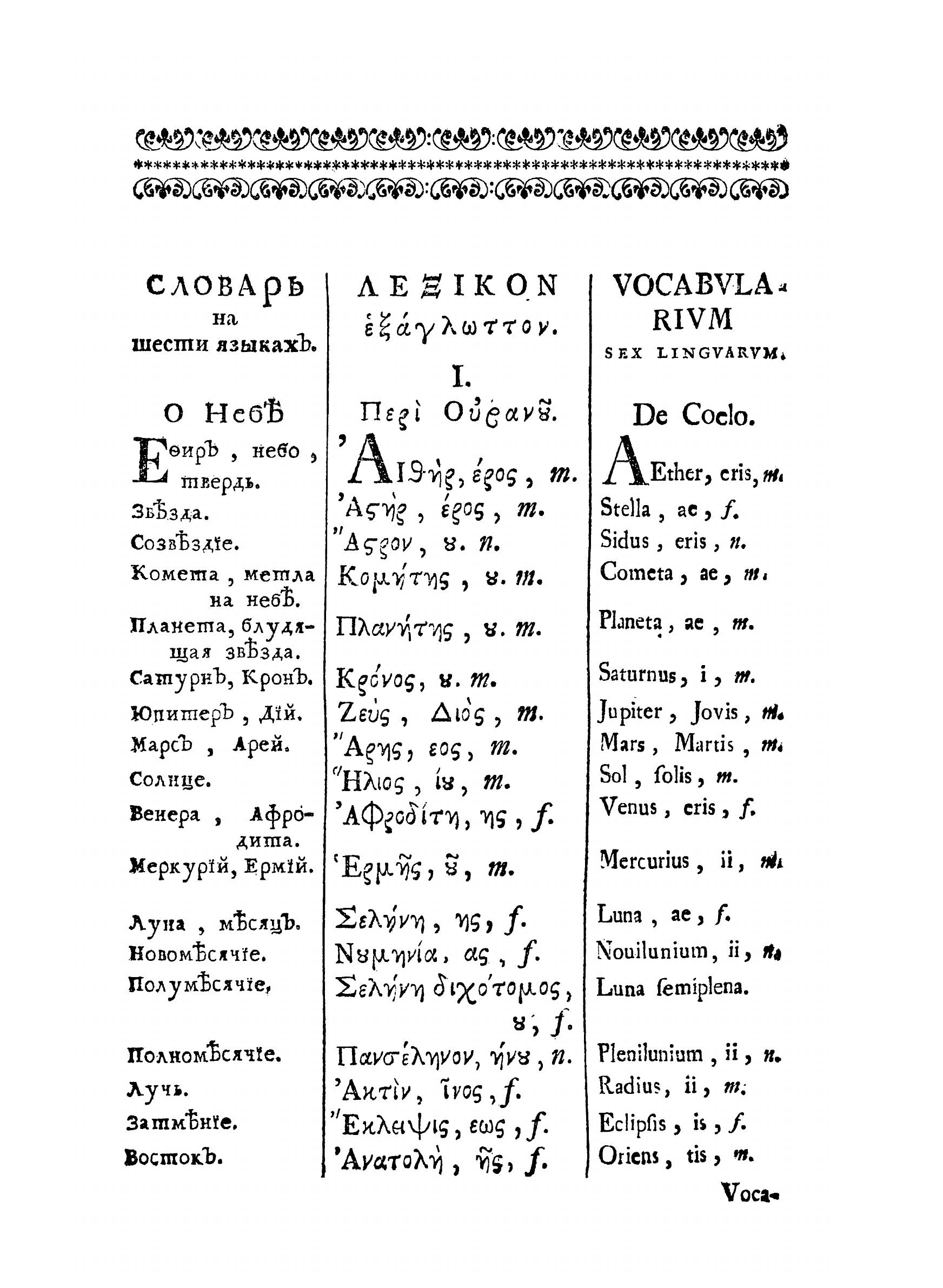 Словарь на шести языках: российском, греческом, латинском, французском, немецком и английском изданный в пользу учащегося российского юношества.