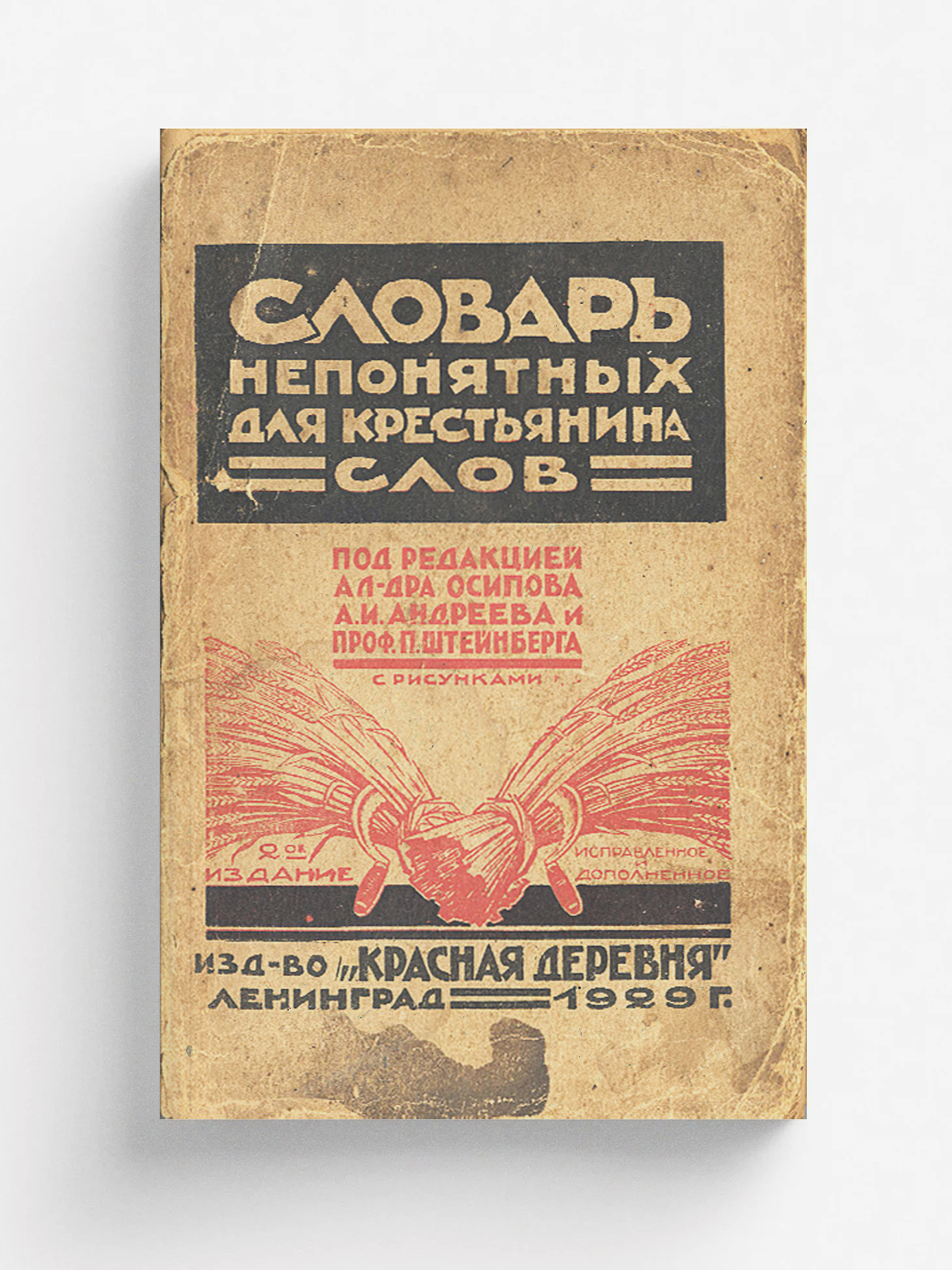 Словарь непонятных слов для крестьян при чтении газет, журналов, книг и т. п. [Текст] : С рис. / Составлен под ред.: Ал-дра Осипова, А. И. Андреева, проф. П. Н. Штейнберга и при участии А. Н. Алексеева, М. М. Казанского, П. И. Кутейникова... [и др]. — 2-е изд., испр. и доп. — [Ленинград] : Красная газета, 1930 (типо-лит. «Вестник Ленингр. облисполкома»). — 172 с., [4] с. объявл. : ил., портр., черт., схем., карт.; 21?14 см.