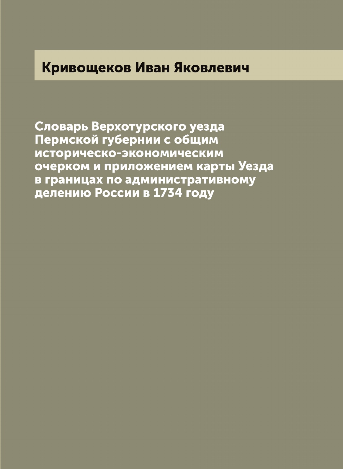 Печатная книга «Словарь Верхотурского уезда Пермской губернии с общим историческо-экономическим очерком и приложением карты Уезда в границах по административному делению России в 1734 году» в мягкой обложке, язык - русский. В книге 835 страниц, она напечатана на белой офсетной бумаге плотностью 80 г/м². Формат издания — 205x280 мм. Все книги аккуратно упаковываем в прочный трёхслойный непрозрачный картонный конверт.