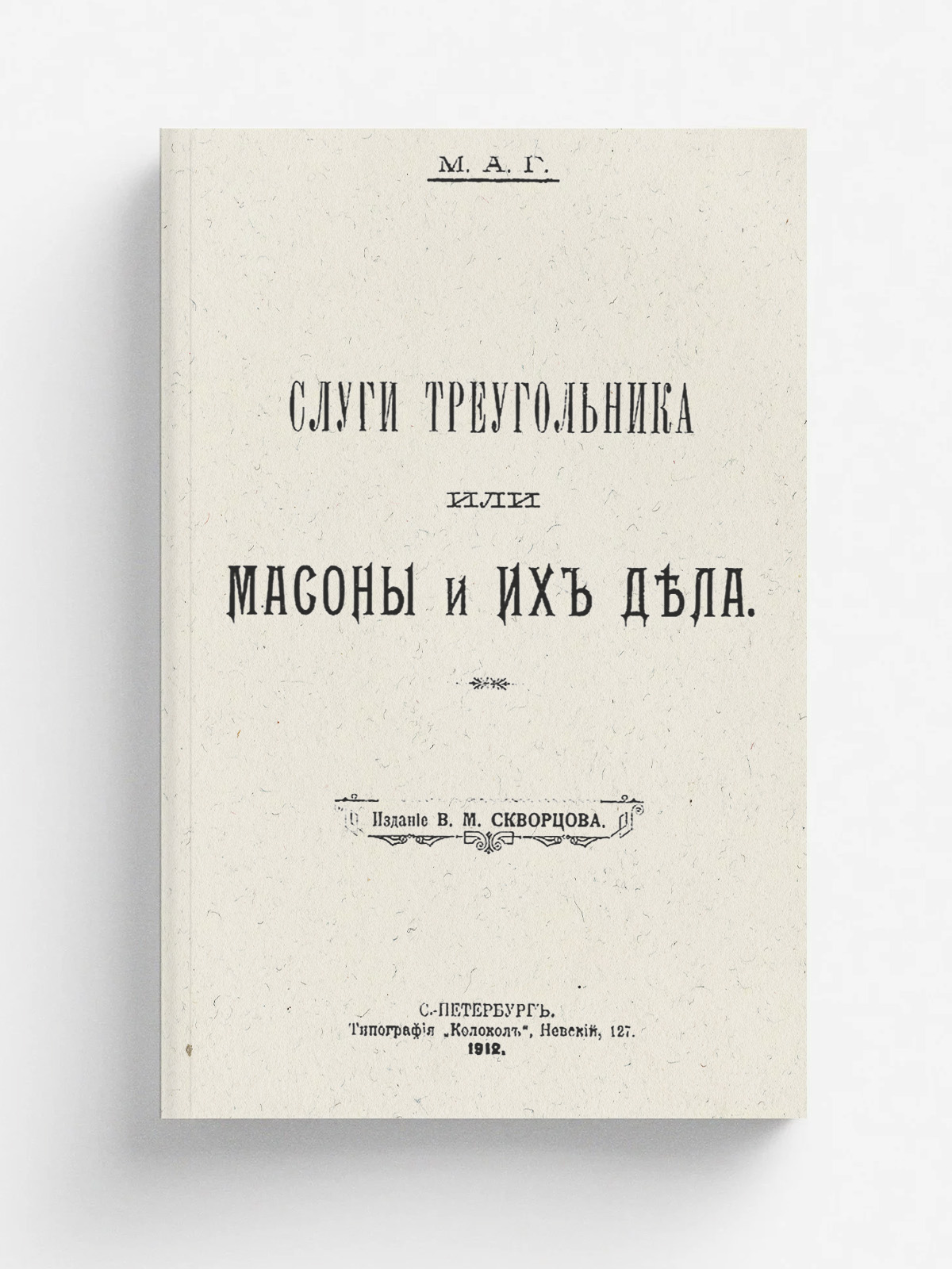 Слуги треугольника или Масоны и их дела = Масоны и их дела. — Санкт-Петербург : В. М. Скворцов, 1912 (тип. Колокол). — 28 с.; 22.