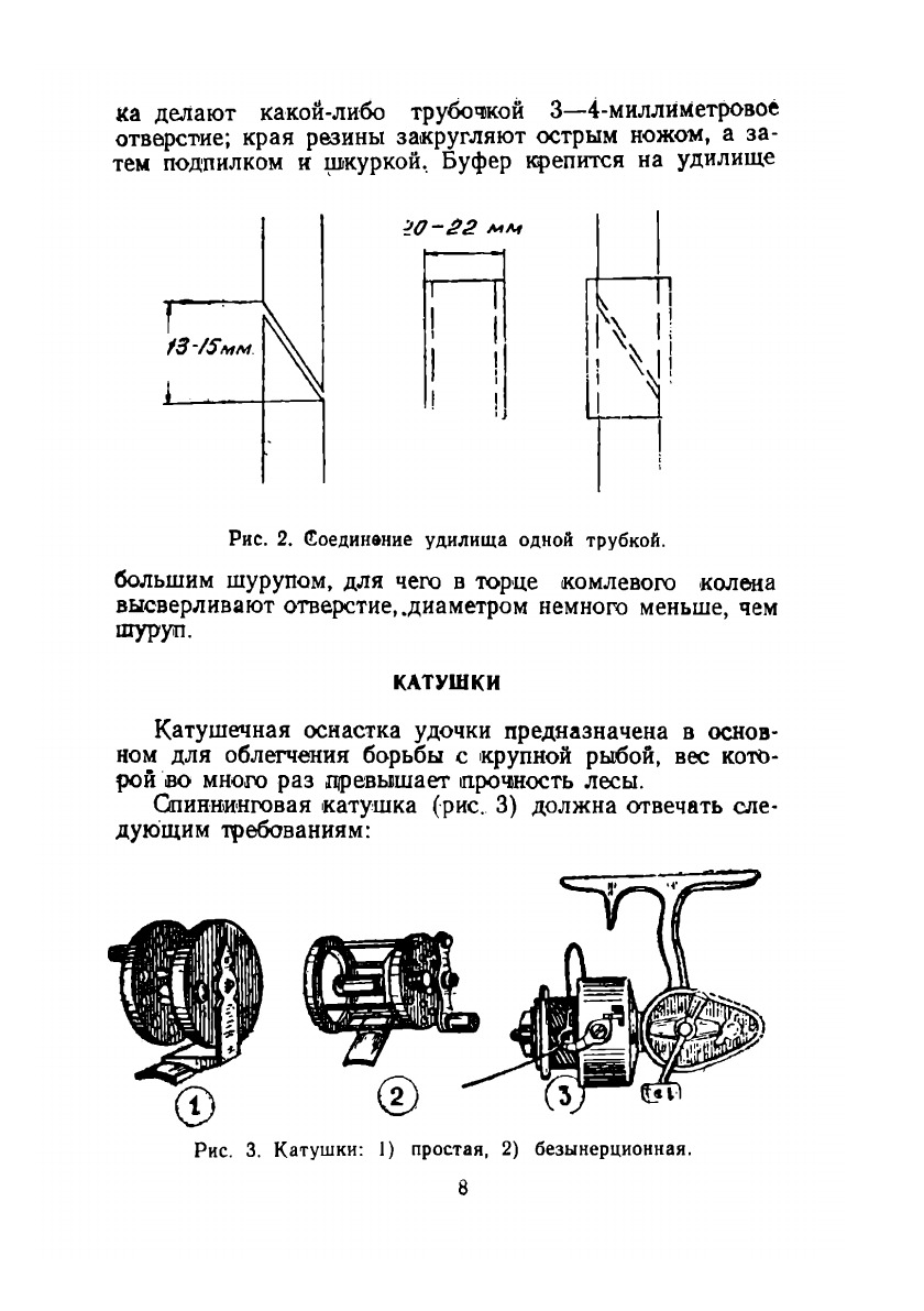 За последние 20—30 лет спиннинговый спорт претерпел новые изменения и усовершенствования: появились почти идеальные лесы для спиннинга из капрона (сатурн) и платиля, безынерционные катушки, превосходные удилища; от легких насадок спортсмены переходят на тяжелые, как более удобные и целесообразные...