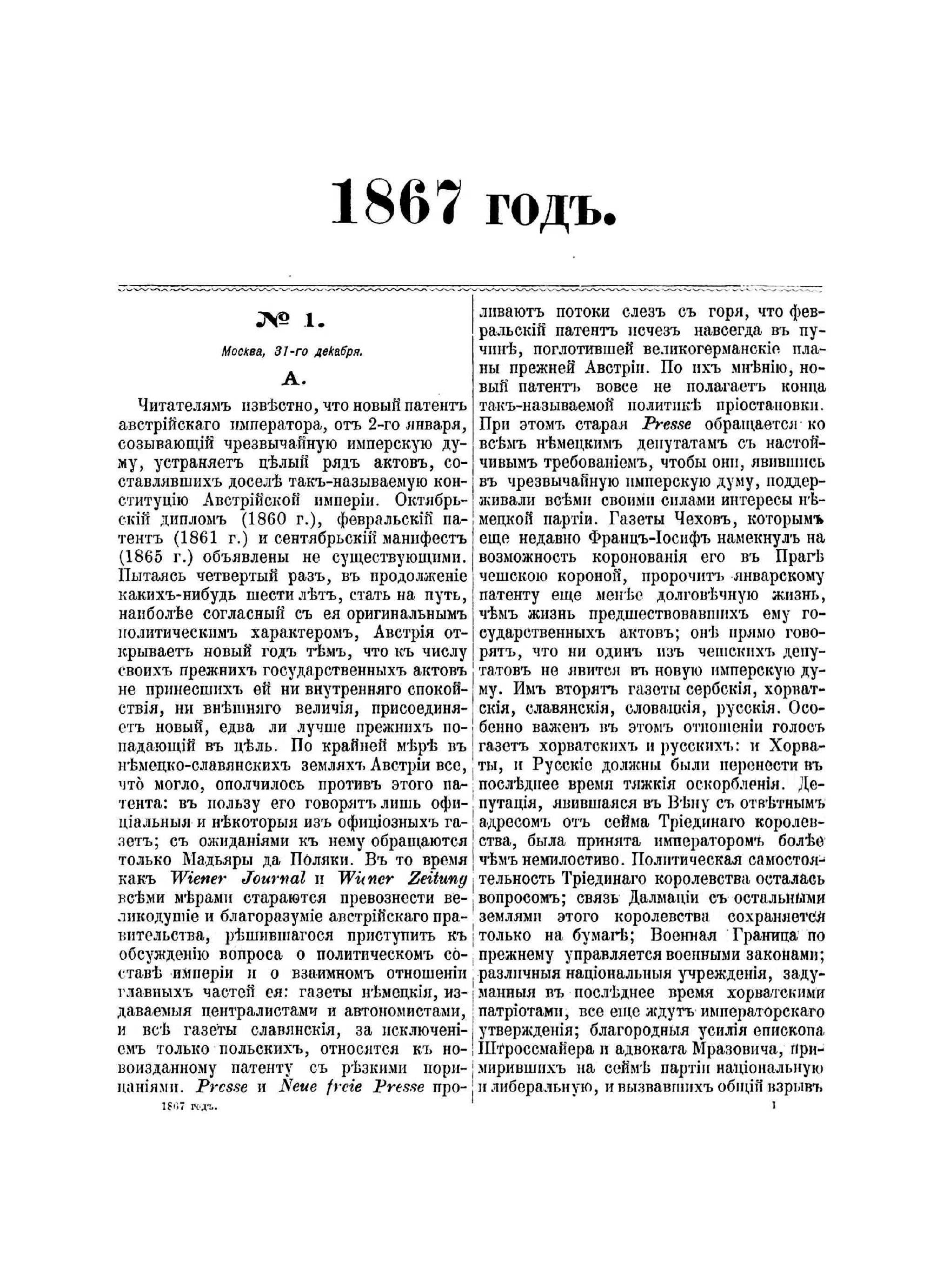 Собрание передовых статей Московских ведомостей 1867 год. Редактор М. Н. Катков. Москва, 1897 год.