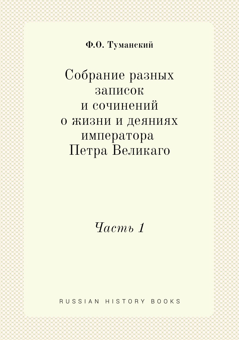 Собрание разных записок и сочинений, служащих к доставлению полнаго сведения о жизни и деяниях государя императора Петра Великаго. Часть 1. Собрание изданное трудами и иждивением Феодора Туманскаго.