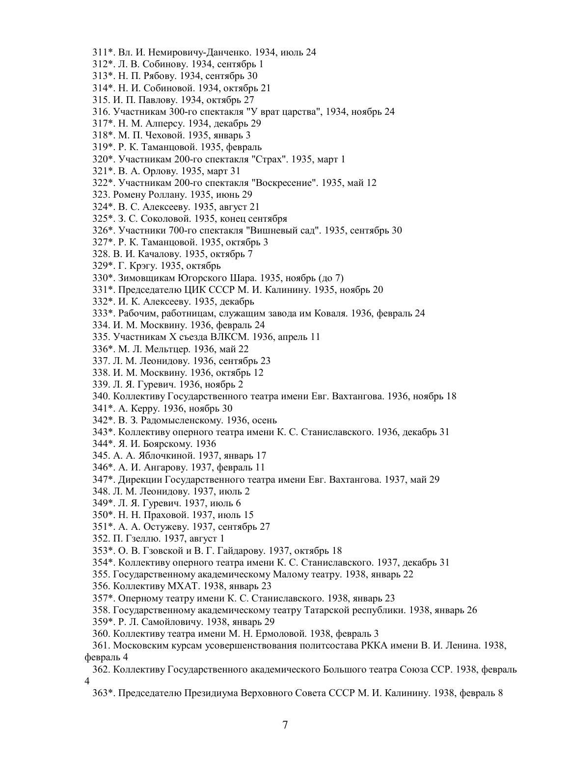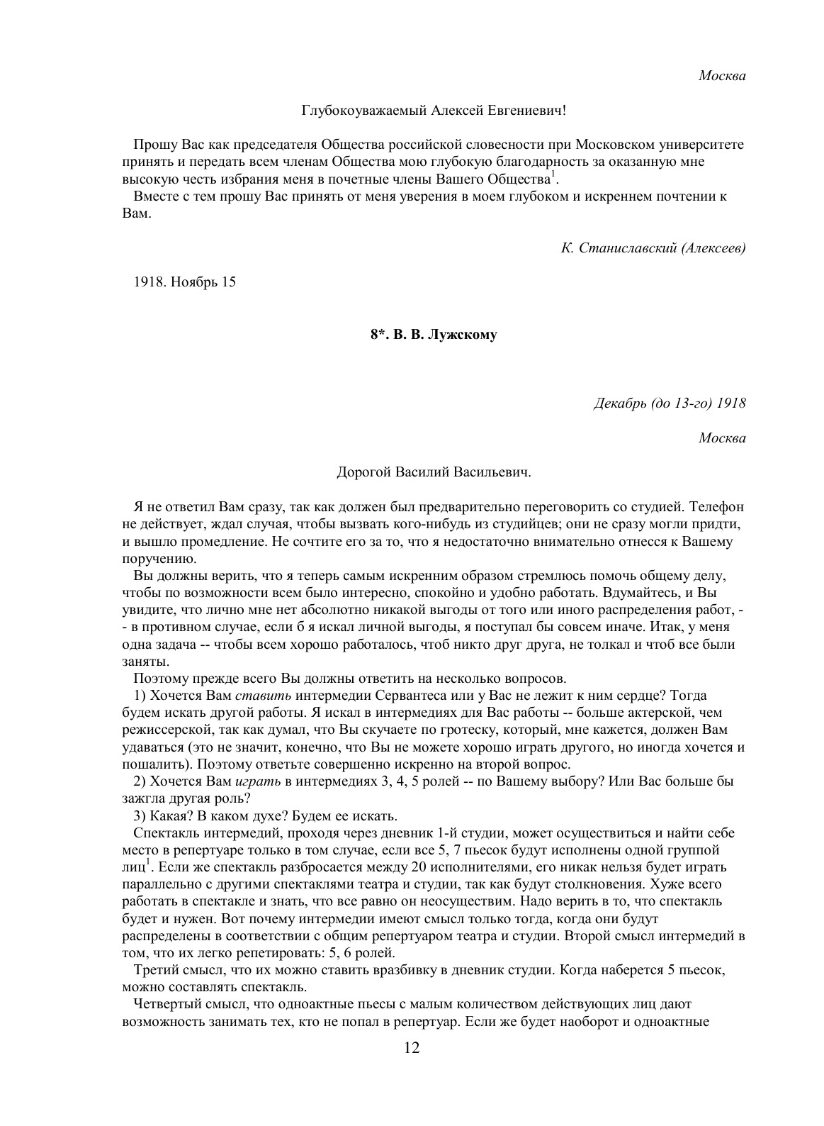 Собрание сочинений в восьми томах. Седьмой и восьмой тома посвящены эпистолярному наследию Станиславского. В них публикуются избранные письма Станиславского к деятелям искусства, литературы и науки, а также к родным, друзьям и ученикам, начиная с юношеских лет и кончая последними годами его жизни. Широко представлена переписка Станиславского с крупнейшими писателями, художниками, актерами и режиссерами современного театра. Письма являются ценнейшим первоисточником для изучения творческой личности Станиславского, его эстетических воззрений и общественной деятельности. Они охватывают широкий круг вопросов теории и практики современного театра, раскрывают существо эстетических взглядов Станиславского. Большинство писем публикуется впервые.
