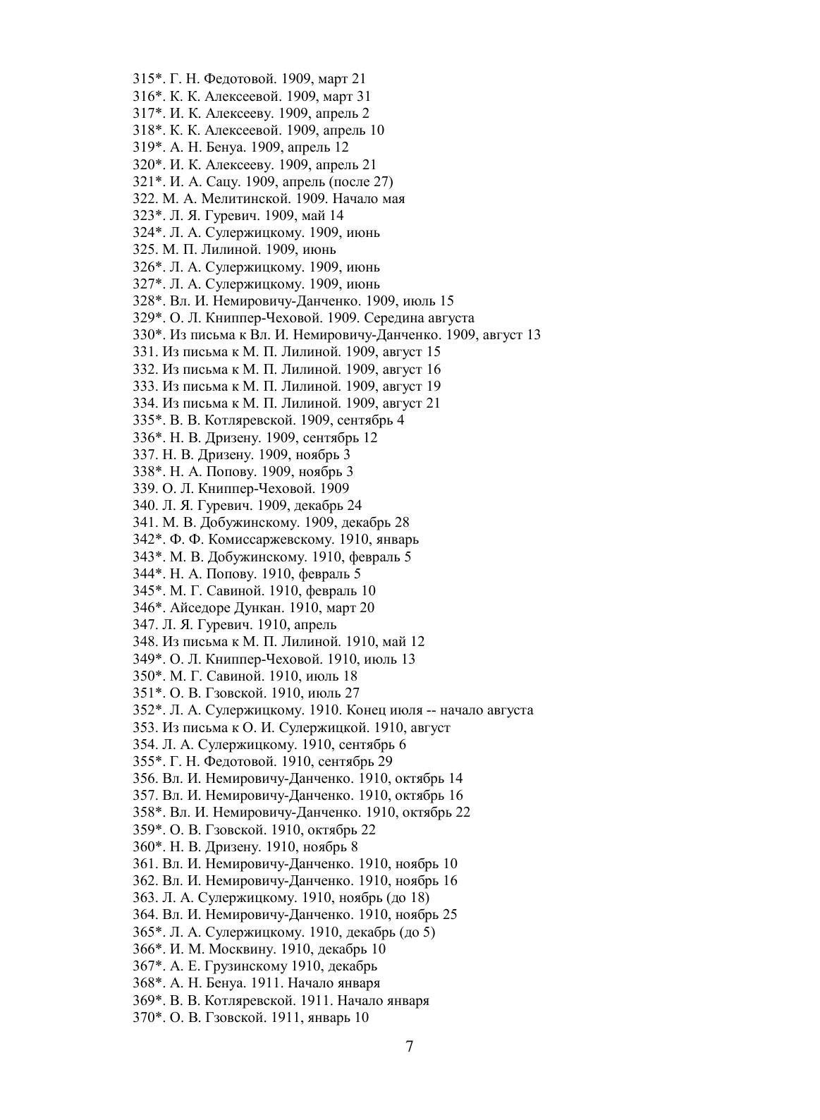 Седьмой и восьмой тома посвящены эпистолярному наследию Станиславского. В них публикуются избранные письма Станиславского к деятелям искусства, литературы и науки, а также к родным, друзьям и ученикам, начиная с юношеских лет и кончая последними годами его жизни. Широко представлена переписка Станиславского с крупнейшими писателями, художниками, актерами и режиссерами современного театра. Письма являются ценнейшим первоисточником для изучения творческой личности Станиславского, его эстетических воззрений и общественной деятельности. Они охватывают широкий круг вопросов теории и практики современного театра, раскрывают существо эстетических взглядов Станиславского. Большинство писем публикуется впервые.