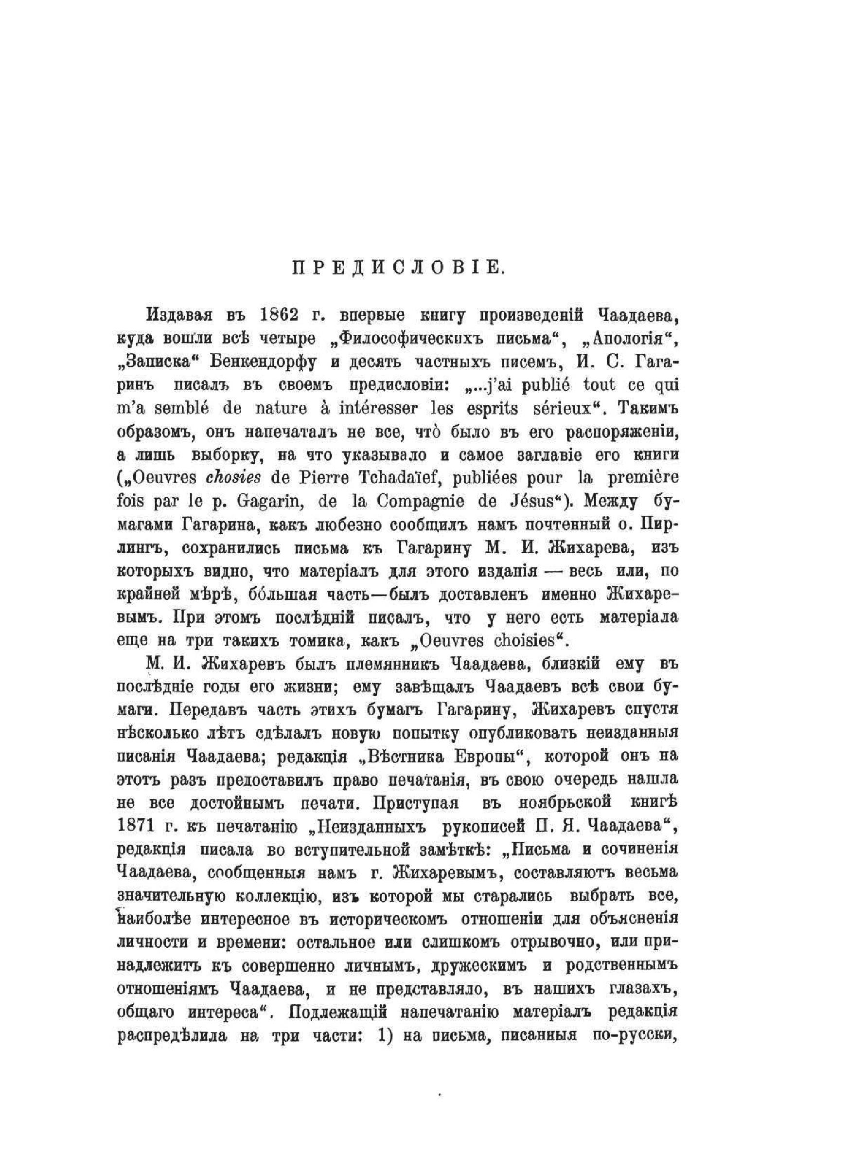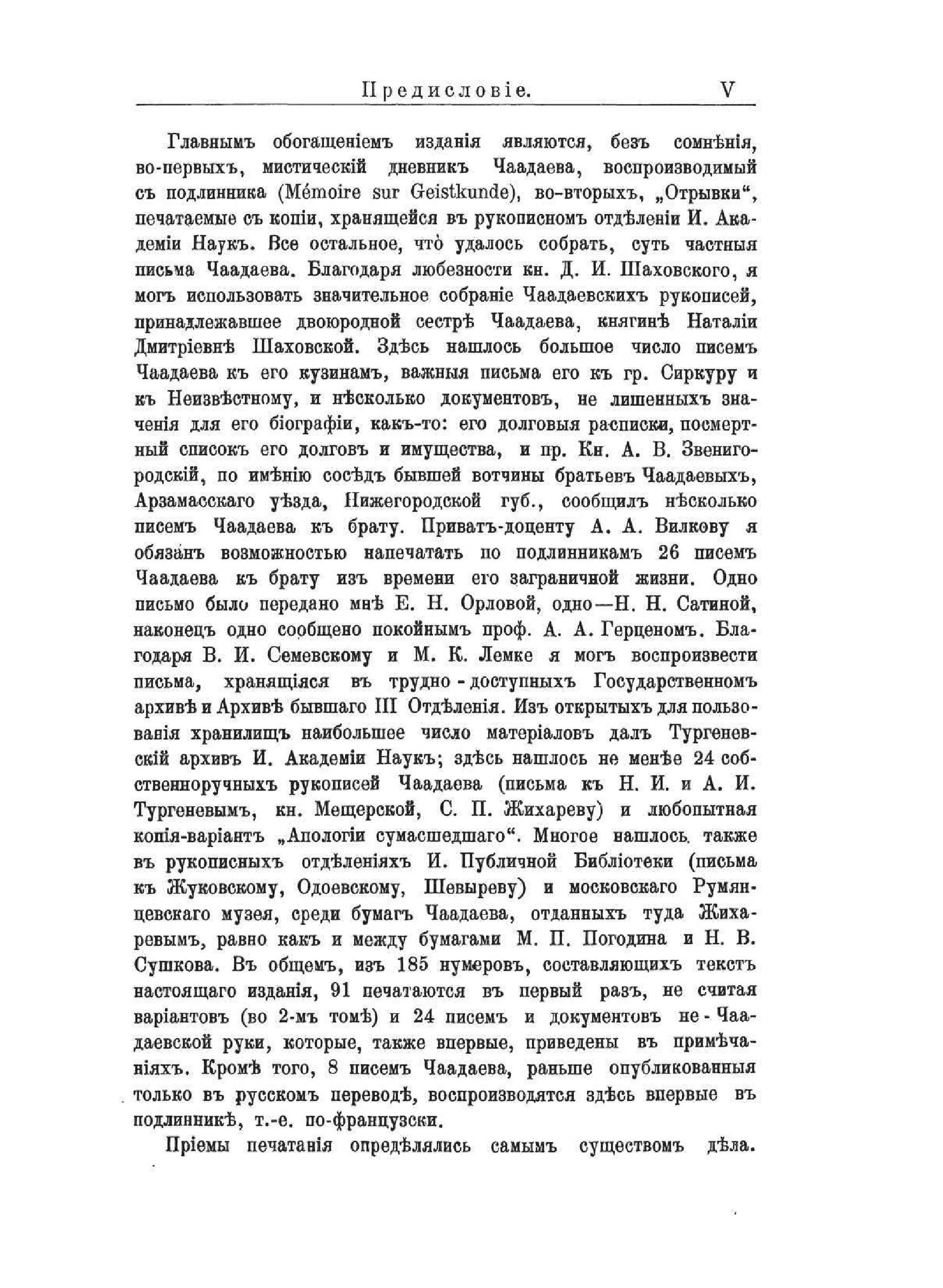 Въ настоящее изданiе вошли все писанiя Чаадаева, какiя доныне появились въ печати, и все, какiя мне сверхъ того удалось разыскать. Такъ какъ моей целью было собрать по возможности все, что вышло изъ-подъ пера Чаадаева, то въ настоящее изданiе внесены и собственноручныя письменные «показанiя» Чаадаева, данные имъ на допросахъ 1826 и 1836 гг., и его завещанiе.Редактор М. ГершензонРепринтное издание по технологии print-on-demand с оригинала 1913 года.