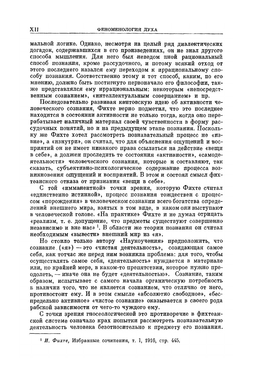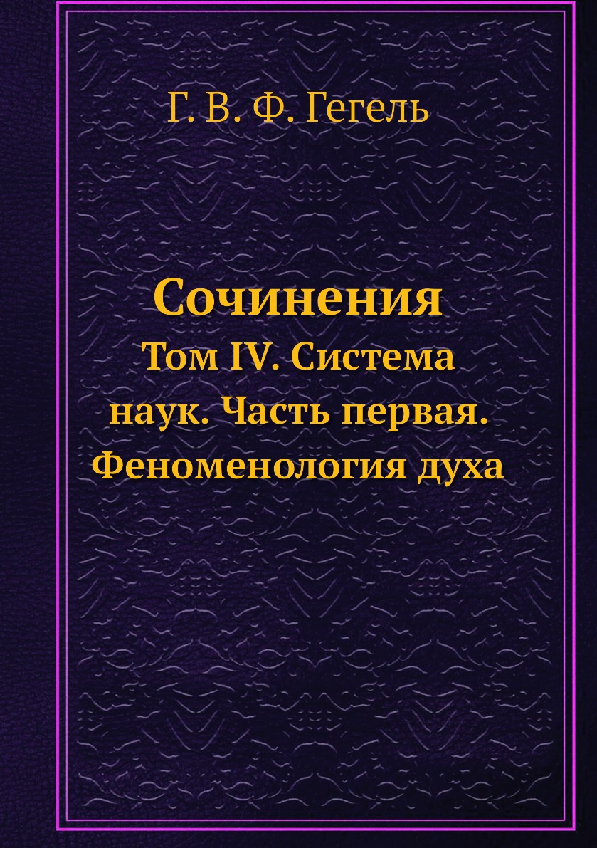 «Феноменология духа» — первое крупное произведение Георга Вильгельма Фридриха Гегеля, в котором дано развернутое изложение его собственной оригинальной системы философских взглядов. Эта работа знаменовала начало теоретической эволюции немецкого философа на основе своих собственных исходных посылок, В ней представлен тот переходный этап философского развития Гегеля, который связан с окончательной переплавкой усвоенного мыслительного материала в новую систему философии. «Феноменология духа» — это изображение гегелевского метода в становлении. И недаром Гегель на звал впоследствии «Феноменологию духа» своим теоретическим «путешествием за открытиями», а Карл Маркс — «истинным источником и тайной» гегелевской философии.
