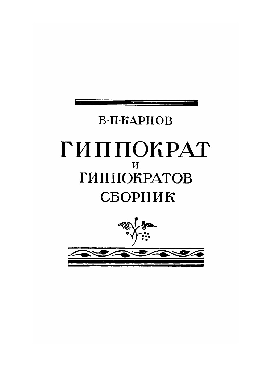 Влияние, которое оказывал величайший из врачей древности Гиппократ на медицинскую мысль в течение двадцати трех столетий, достаточно убедительно говорит об огромном значении его трудов для истории медицины и естествознания. Огромный труд перевода всех книг Гиппократа с греческого языка, начатый проф. В. И. Рудневым еще в 1902 г., позволил Биомедгизу осуществить впервые на русском языке издание избранных книг Гиппократа и таким образом заполнить существенный пробел в русской научной литературе.