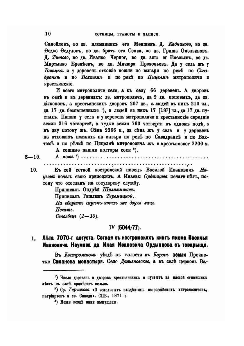Сотницы, грамоты и записи.
