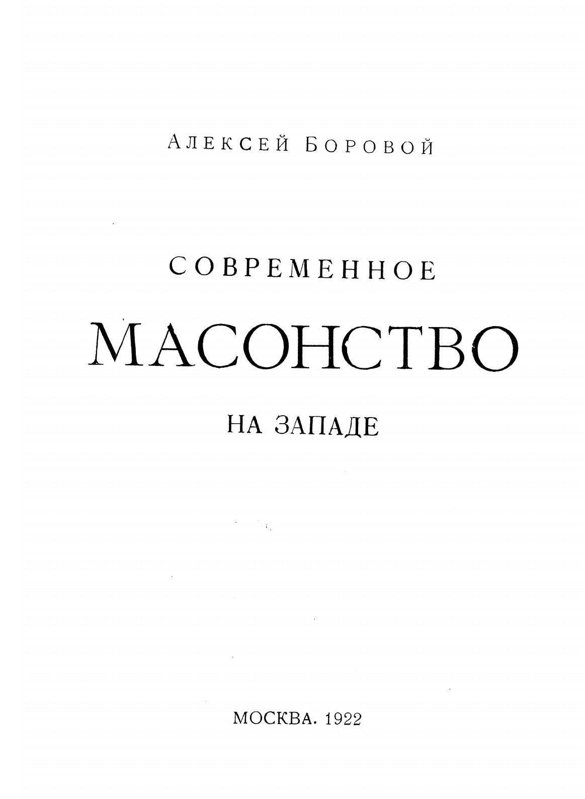 Заметной вехой в историографии русского масонства стал выход в Москве в 1914-1915 гг. в свет коллективного двухтомника "Русское масонство в его прошлом и настоящем" под редакцией С.П.Мельгунова и Н.П.Сидорова. Собственно говоря, это первый и пока единственный в нашей историографии опыт обозрения всей истории масонства, причем не только в России, но и в Европе и Северо-Американских Соединенных Штатах. Готовился и третий том, который должен был быть посвящен масонству XX века, однако из-за событий 1917 года и гражданской войны в России в свет он так и не вышел. Ценным фрагментом этого так и не увидевшего свет тома является работа А. А. Борового "Современное масонство на Западе".