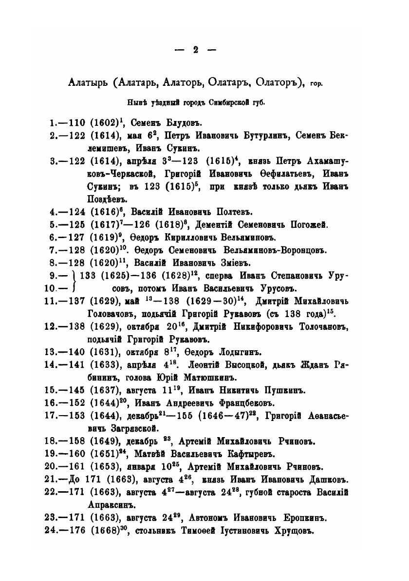 Списки городовых воевод и других лиц воеводского управления Московского государства XVII столетия по напечатанным правительственным актам.