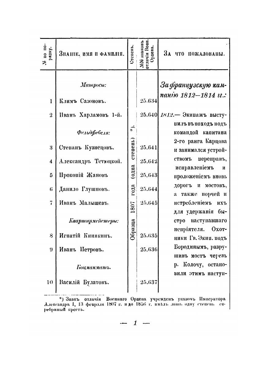 Список нижних чинов - георгиевских кавалеров Гвардейского экипажа, со времени сформирования его в 1810 г.