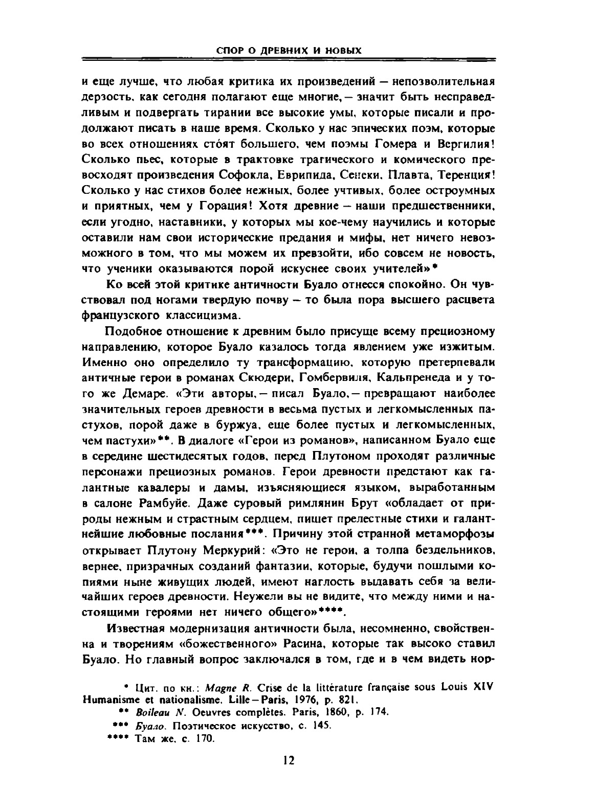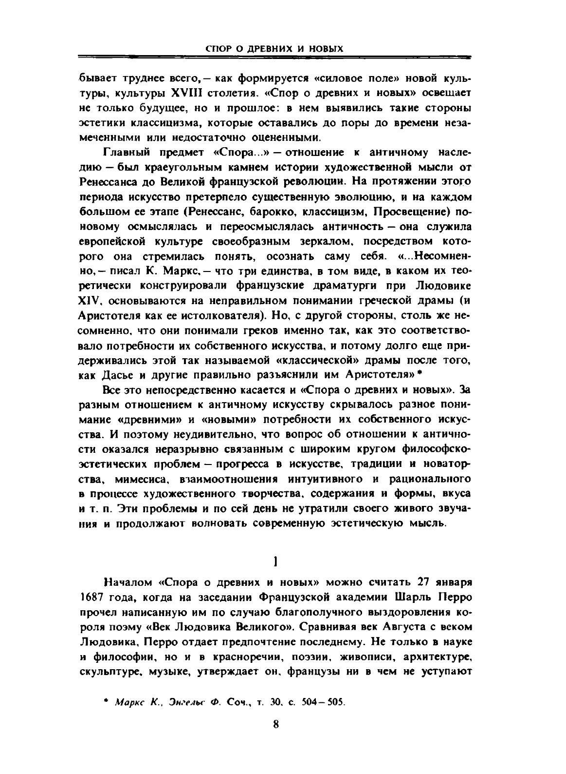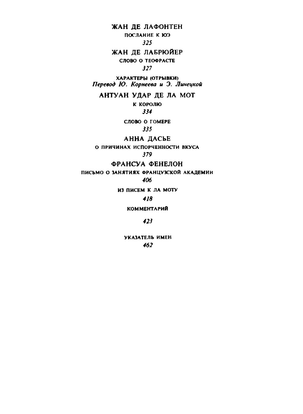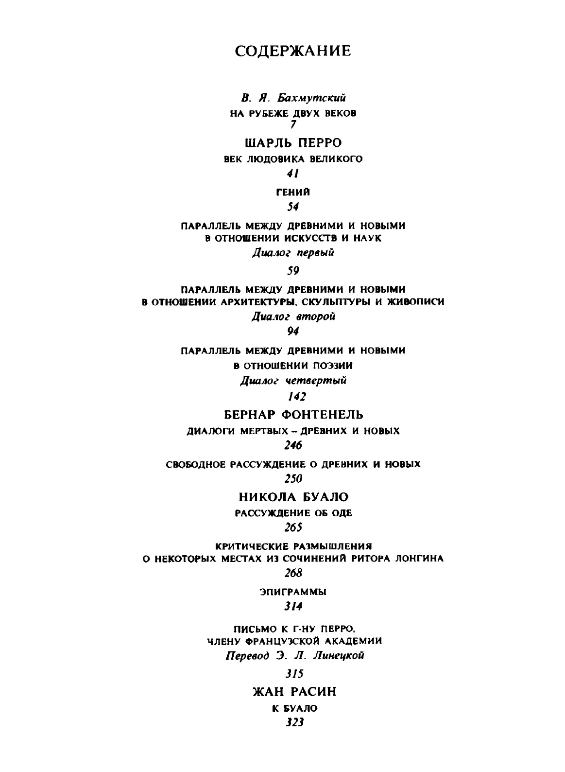 В сборнике публикуются эстетические работы Перро, Фонтенеля, Буало, Расина, Лафонтена, Лабрюйера, Ла Мота, А. Дасье, Фенелона, связанные со «Спором о древних и новых», разгоревшимся во Франции на рубеже XVII и XVIII веков, по вопросу об отношении к античному наследию. Большинство материалов на русском языке публикуется впервые. Составление и вступительная статья В.Я. Бахмутского