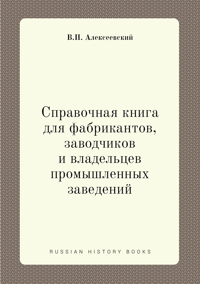 Печатная книга «Справочная книга для фабрикантов, заводчиков и владельцев промышленных заведений» в мягкой обложке, язык - русский. В книге 300 страниц, она напечатана на белой офсетной бумаге плотностью 80 г/м². Формат издания — 148x210 мм. Все книги аккуратно упаковываем в прочный трёхслойный непрозрачный картонный конверт.