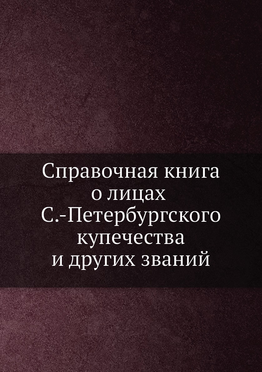 Печатная книга «Справочная книга о лицах С.-Петербургского купечества и других званий» в мягкой обложке, язык - русский. В книге 694 страниц, она напечатана на белой офсетной бумаге плотностью 80 г/м². Формат издания — 148x210 мм. Все книги аккуратно упаковываем в прочный трёхслойный непрозрачный картонный конверт.