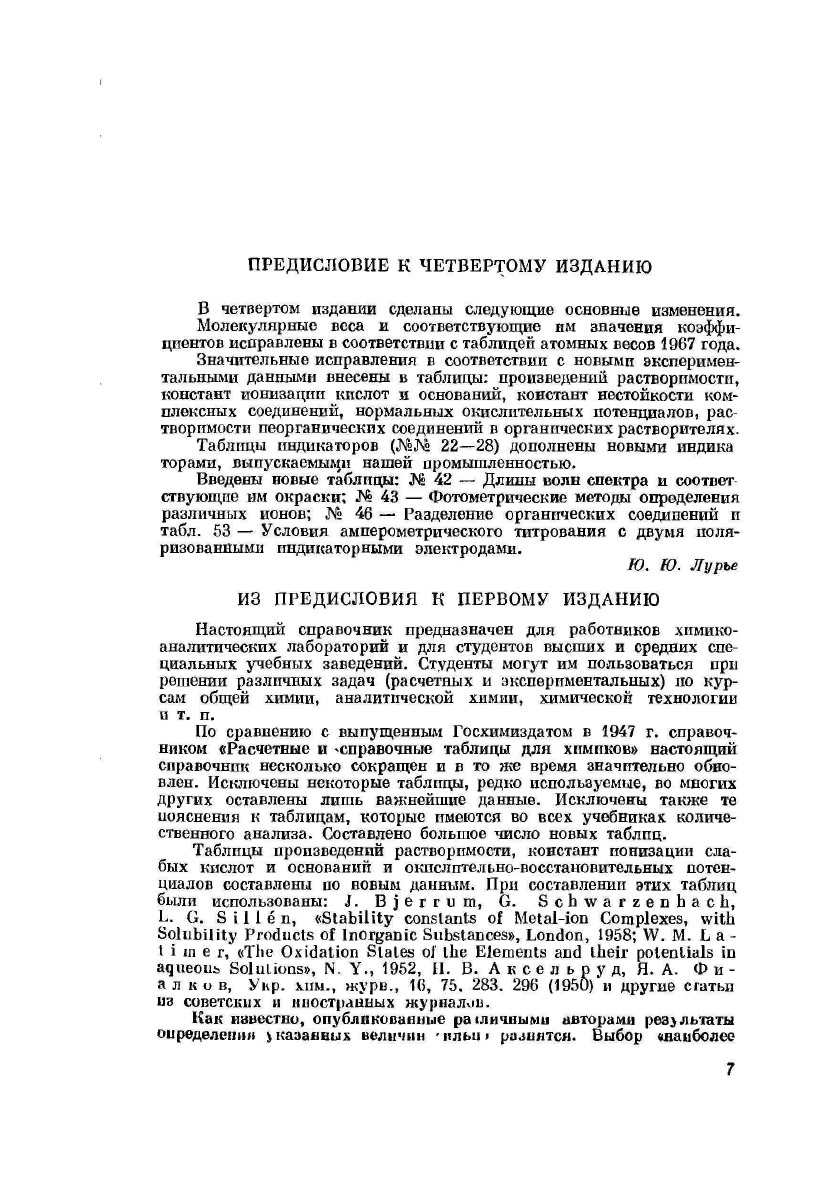 Справочник содержит основные таблицы, применяемые для вычисления результатов разнообразных химических анализов, а также практически все сведения, необходимые для работы химиков-аналитиков. Может служить пособием для студентов высших и средних специальных учебных заведений при изучении курса аналитической химии.