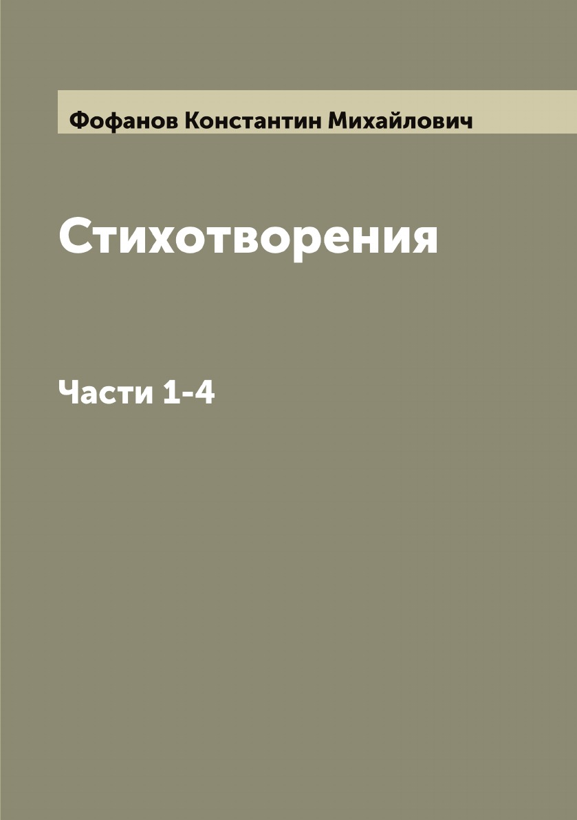 Печатная книга «Стихотворения К. М. Фофанова, Части 1-4» в мягкой обложке, язык - русский. В книге 366 страниц, она напечатана на белой офсетной бумаге плотностью 80 г/м². Формат издания — 148x210 мм. Все книги аккуратно упаковываем в прочный трёхслойный непрозрачный картонный конверт.