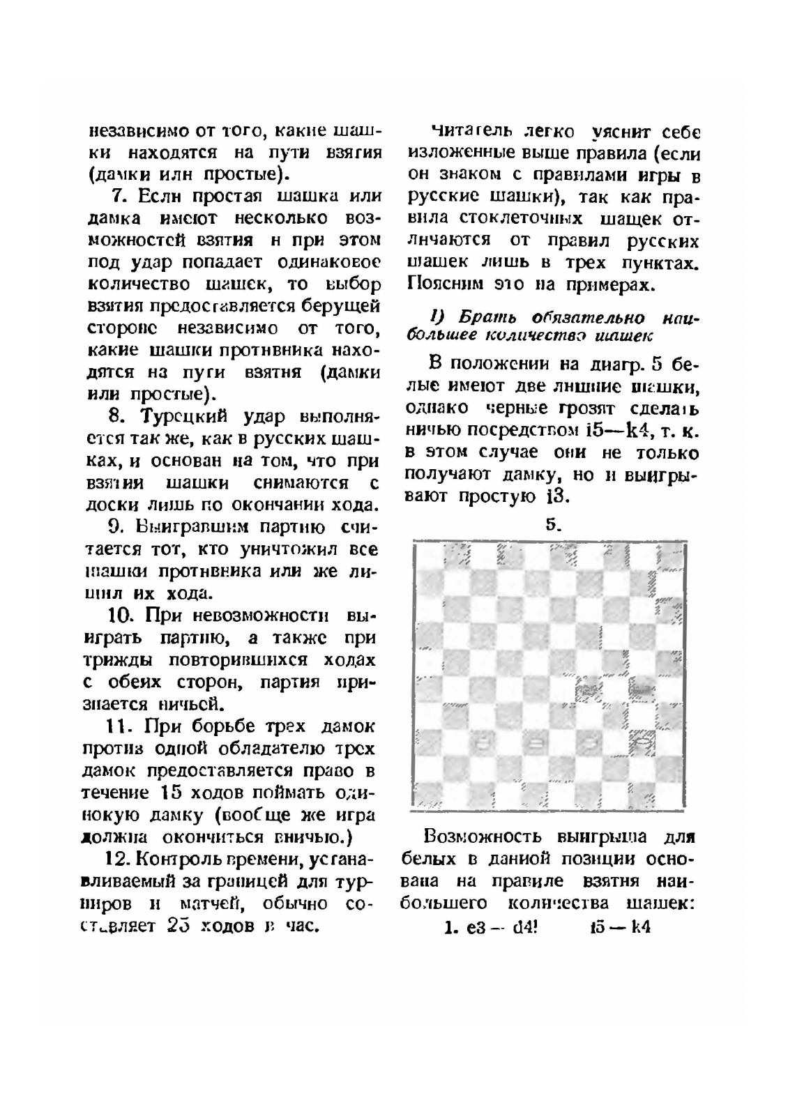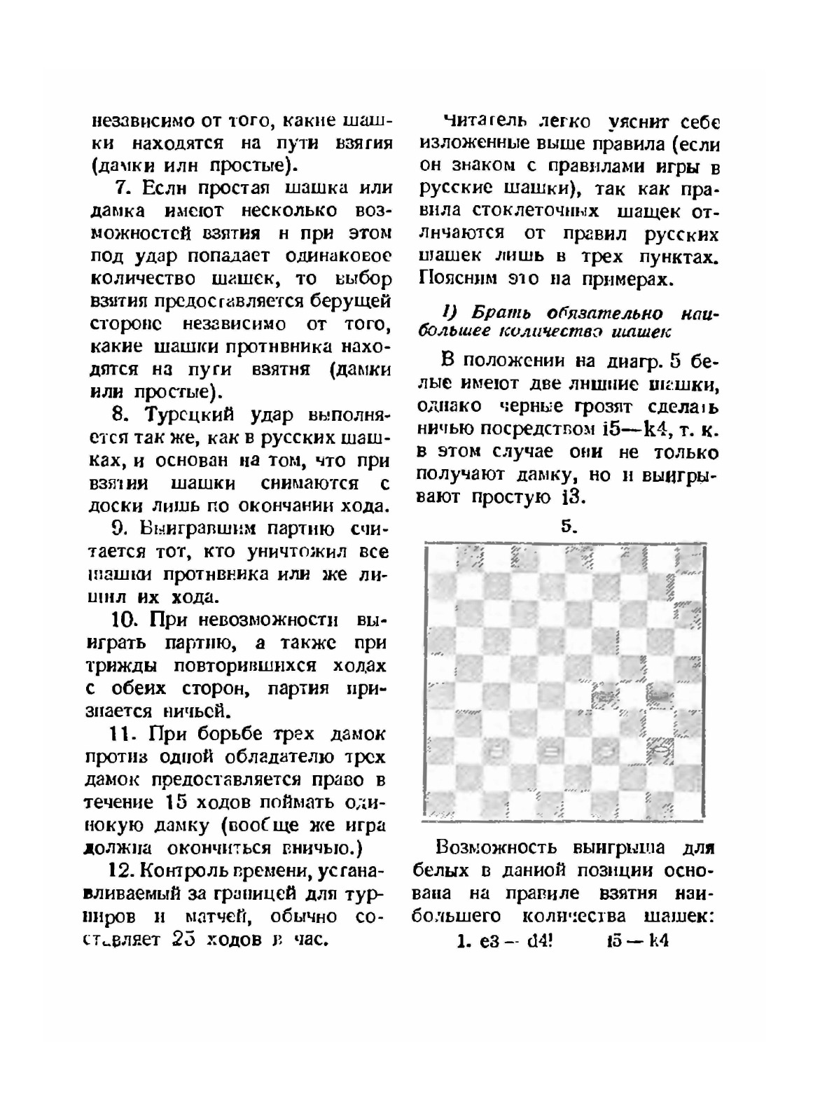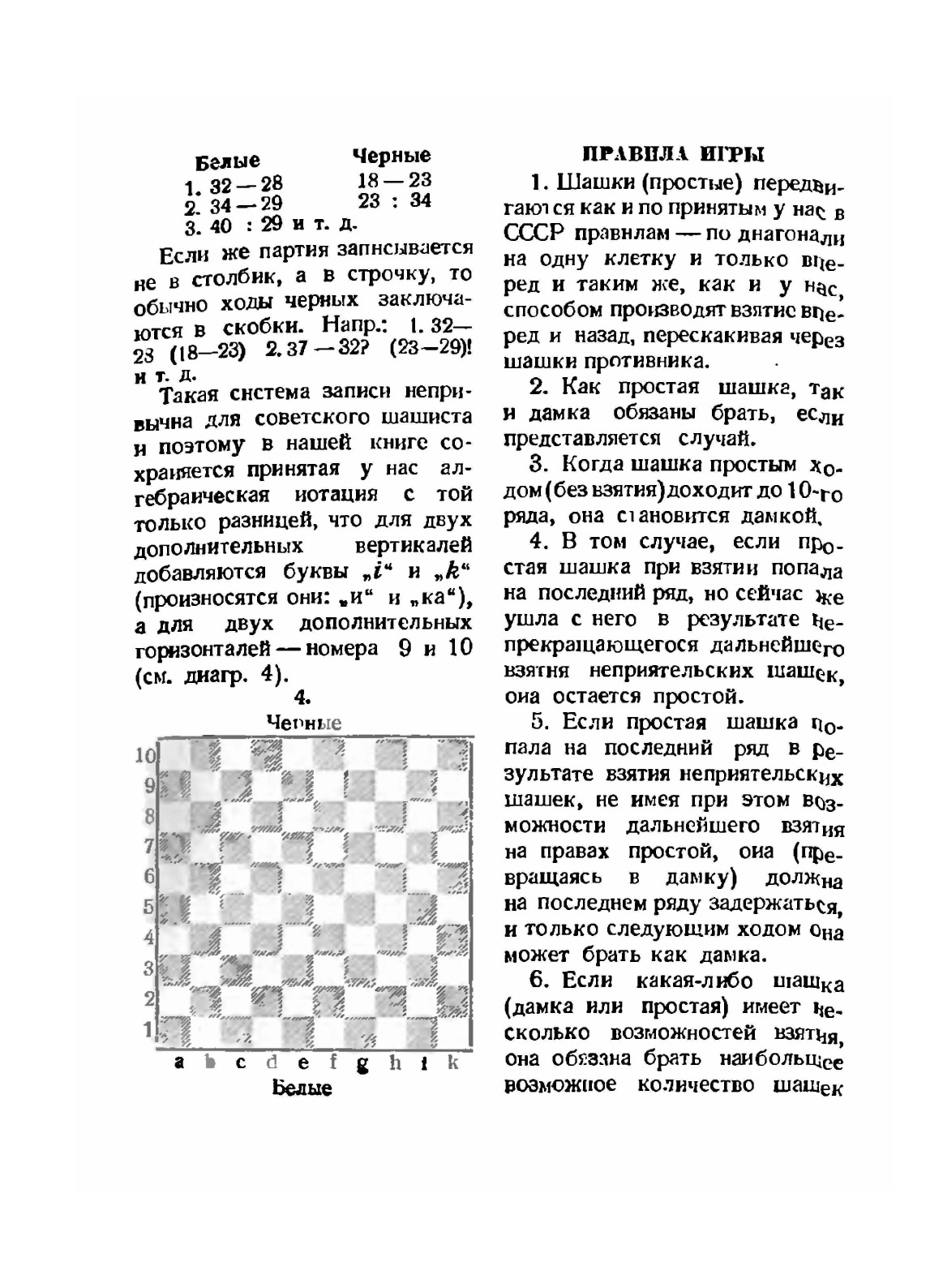 Из предисловия: "Предлагаемая работа шашечного мастера СССР В.С. Гилярова - энтузиаста стоклеточных шашек, является первым в СССР опытом создания учебного пособия для квалифицированных кадров". Книга полностью посвящена международным шашкам: правила игры, особенности, приёмы борьбы, этапы партий и пр. Примечательно, что в книге применяется устаревшая нотация стоклеточной доски - буквы и цифры по аналогии с русскими шашками (с буквами i, j, k).