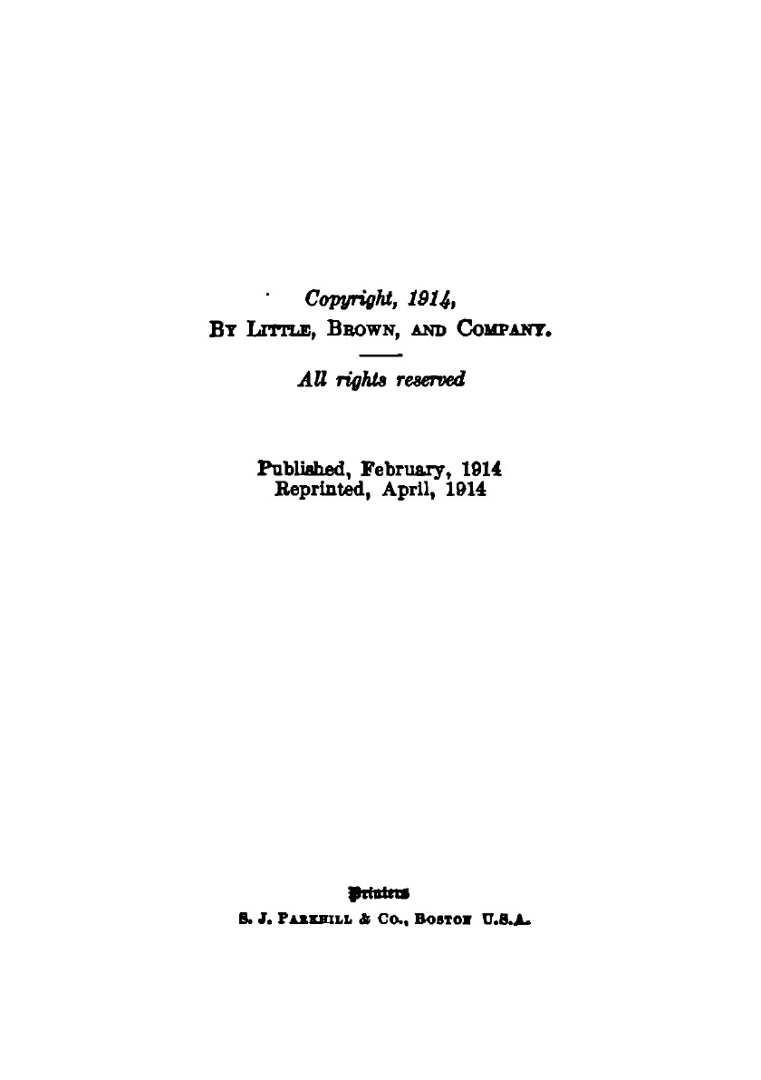 Эта книга — репринт оригинального издания (издательство "Little, Brown", 1914 год), созданный на основе электронной копии высокого разрешения, которую очистили и обработали вручную, сохранив структуру и орфографию оригинального издания. Редкие, забытые и малоизвестные книги, изданные с петровских времен до наших дней, вновь доступны в виде печатных книг.