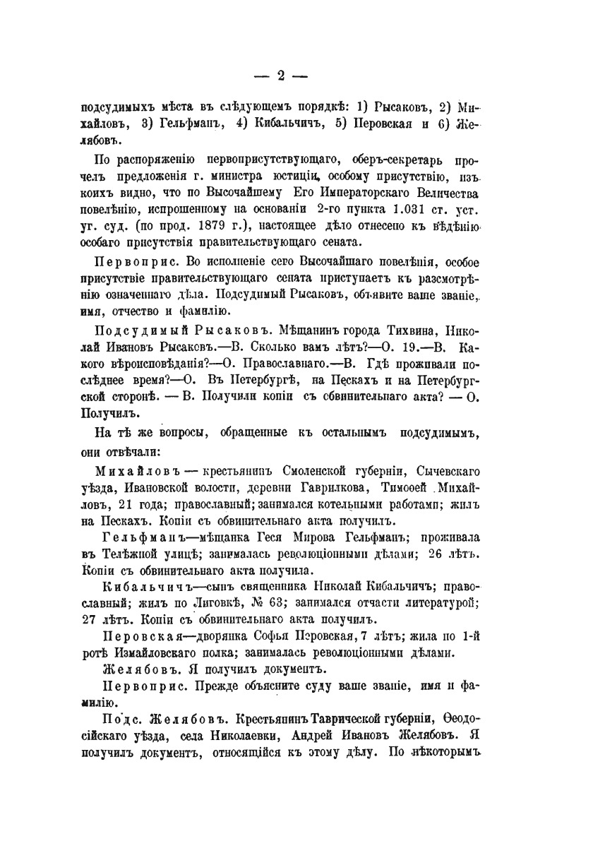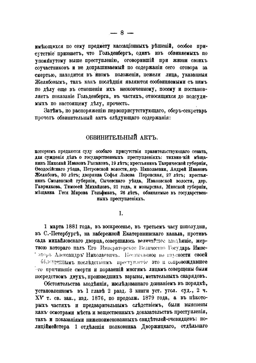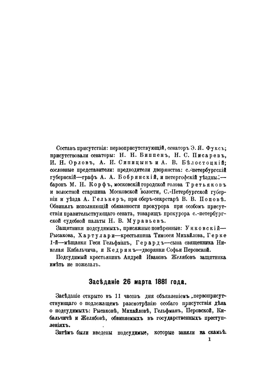Суд над цареубийцами. Судебное дело о злодейском убийстве 1 марта 1881 года государя императора Александра Николаевича. (Полное извлечение из правительственного вестника).