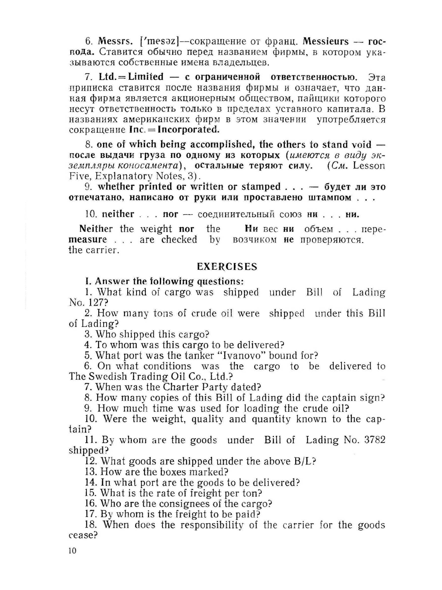 Настоящее пособие, выпускаемое третьим изданием, предназначенодля учащихся старших курсов судоводительских факультетов испециальностей высших и средних учебных заведений морского флота, атакже для работников плавсостава, занятых на загранперевозках.По сравнению со вторым изданием, вышедшим в 1960 году, книгаподверглась дальнейшей переработке; в нее внесены исправления идополнения. Дополнен раздел составления деловых сообщений образцамиписем и телеграмм, взятых из живой практики и поэтому представляющихценность не только как учебный, но и как справочный материал вповседневной деятельности судов загранплавания.