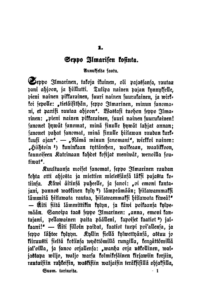 Печатная книга «Suomen kansan satuja ja tarinoita» в мягкой обложке, язык - финский. В книге 722 страниц, она напечатана на белой офсетной бумаге плотностью 80 г/м². Формат издания — 148x210 мм. Все книги аккуратно упаковываем в прочный трёхслойный непрозрачный картонный конверт.