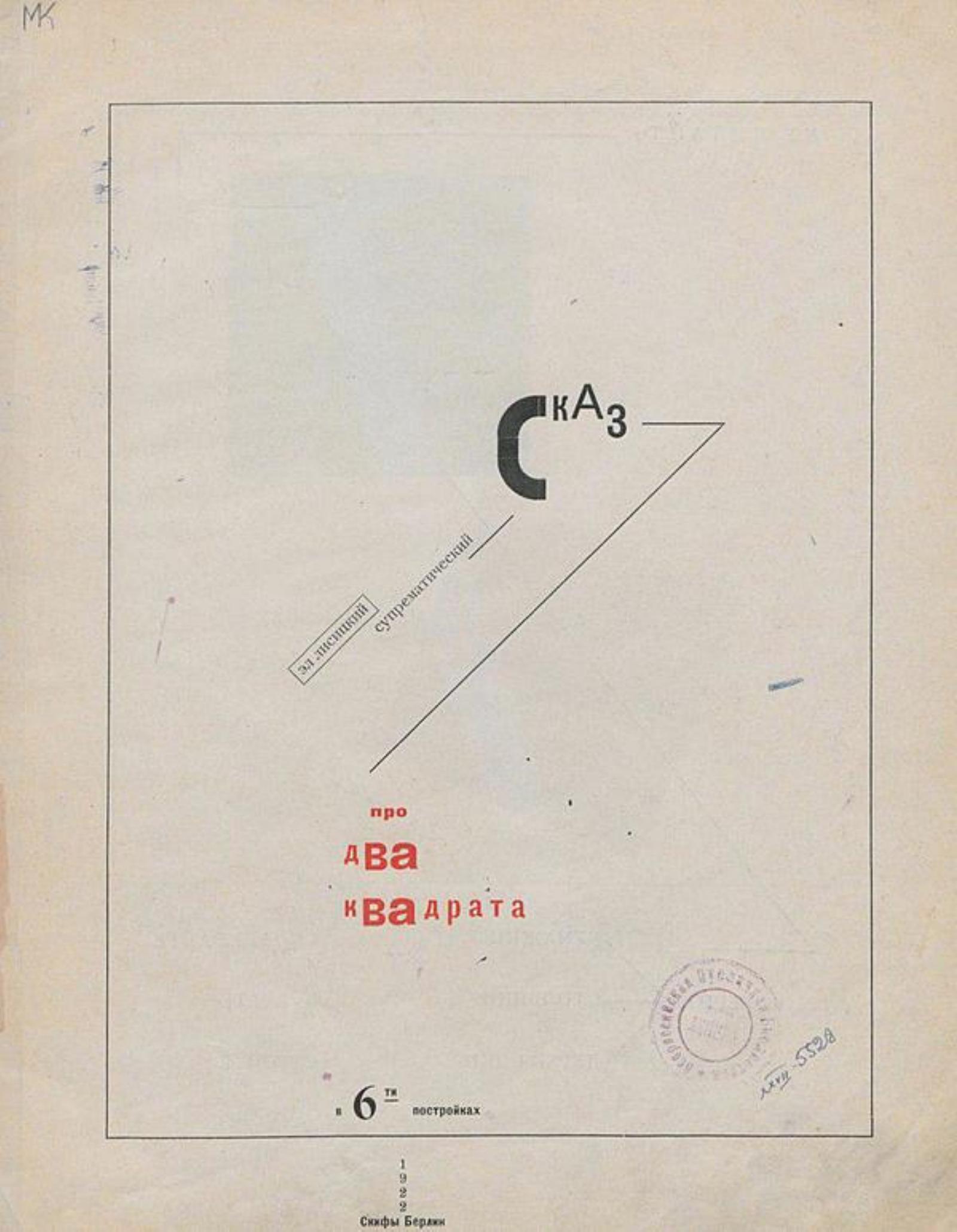 Лисицкий, Эль (1890–1941). Супрематический сказ про два квадрата в 6-ти постройках : / Эл Лисицкий. — Берлин : «Скифы», 1922 (Лейпциг : тип. Габерланда).