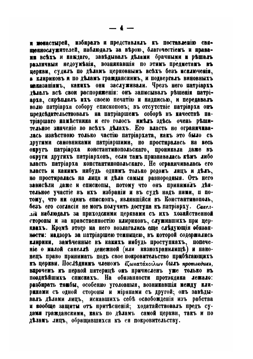 Некоторые церковные учреждения Византии, перенесенные на Русь после принятия ею христианства, испытали здесь более или менее существенные изменения. В греческой церкви при епископах, митрополитах и патриархах образовался с течением времени целый двор, состоявший из разных чиновников, между которыми точно разделены были различные отрасли церковного управления.