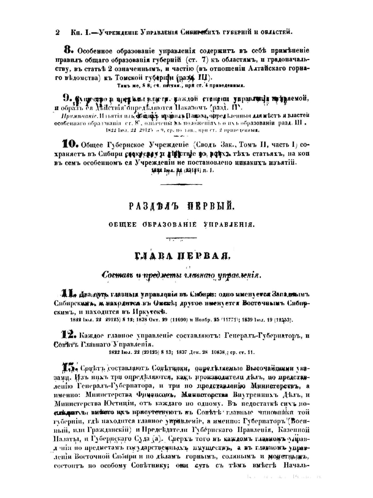 Оригинальное название: Сводъ законовъ Россiйской имперiи. Том второй. Часть II. Особенныя губернскiя учрежденiяСвод законов Российской империи— официальное собрание расположенных в тематическом порядке действующих законодательных актов Российской империи, созданное при Николае I. Впервые он был напечатан в 1832 году. Манифестом 31 января 1833 года Свод законов был объявлен действующим источником права с 1 января 1835 года. Первое издание 1832 года и последующие 1842-го и 1857 года состояли из пятнадцати томов. После 1857 года Свод законов полностью не переиздавался, а выходили лишь отдельные тома. В качестве отдельного – 16-го тома в 1885 году вышли Судебные уставы. Между изданиями Свода законов выходили ежегодные и сводные (за несколько лет) «Продолжения» Свода законов с указанием на упраздненные и измененные статьи. В своде законов собраны все реально действовавшие в определенный момент времени законы по тем или иным проблемам права, это справочник для юристов. Отбор законодательного материала для включения в Свод производился на основе Полного собрания законов (первое Полное собрание законов, появившееся в 1830 году, состояло из 45 томов, содержащих 30 920 актов и 6 томов приложений). Собрание законов – это в большой степени историческое издание. По нему можно изучать развитие, направление правительственной мысли в стране. Это летопись отечественного законотворчества. Изучая страницу за страницей эту летопись, мы можем узнать, что в тот или иной момент истории являлось злобой дня.