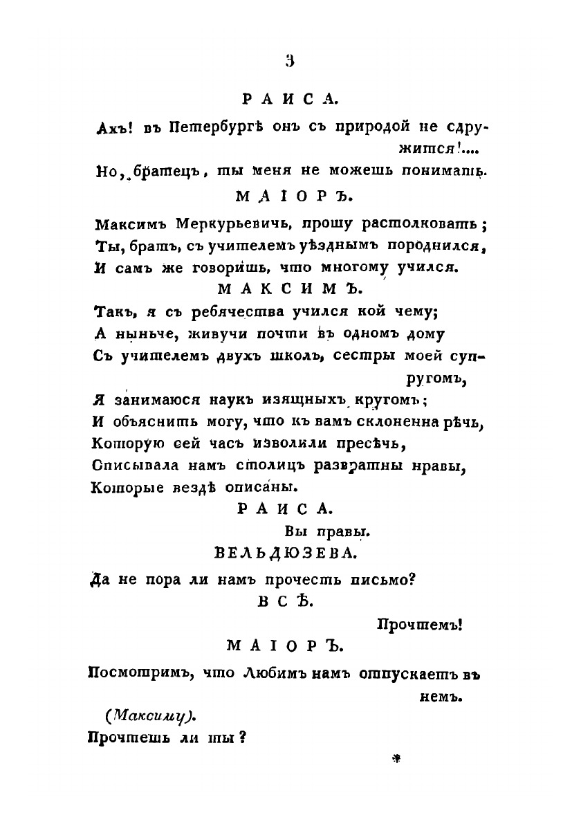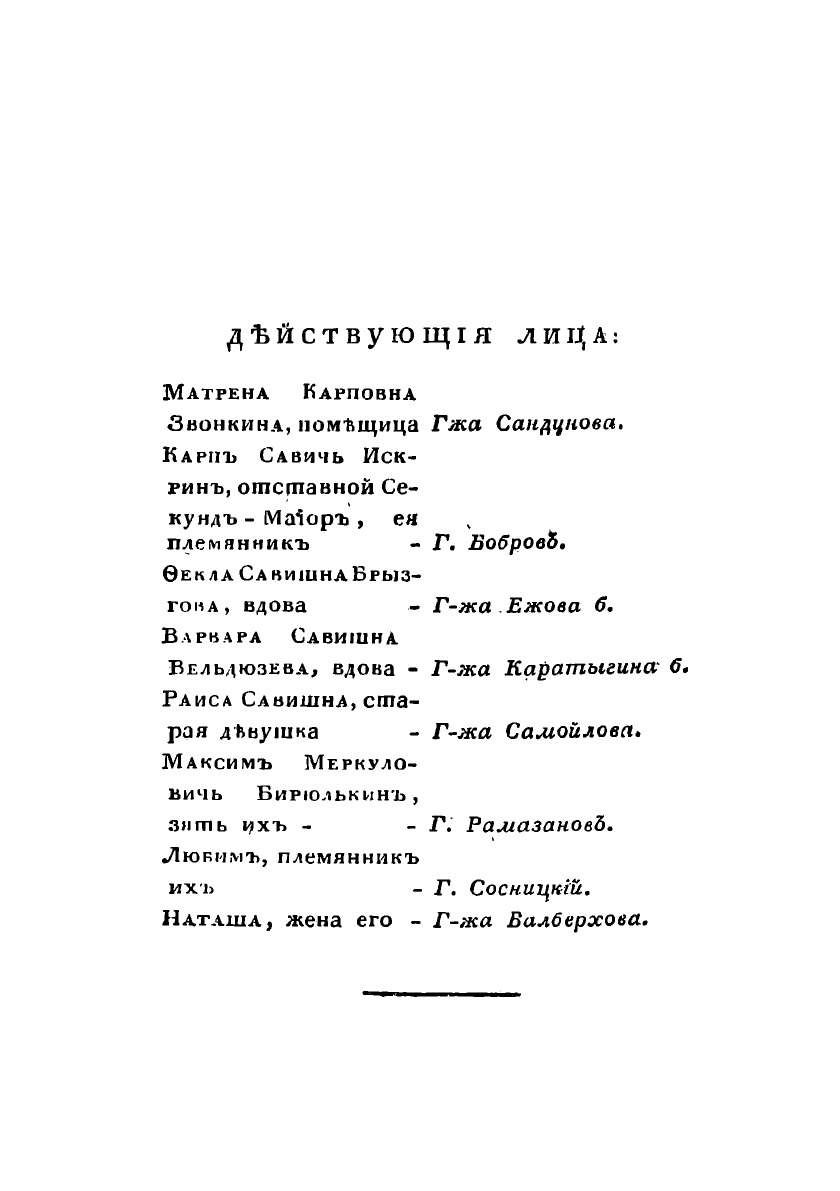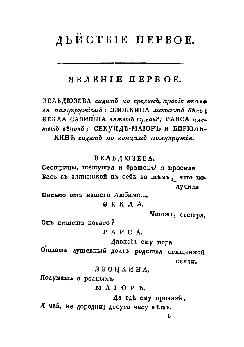 Комедия в трех действиях, в стихах. Представлена в первый раз в Санкт-Петербурге, на Малом Театре, в пользу Актрисы г-жи Валберховой, Января 24 дня, 1818 года.