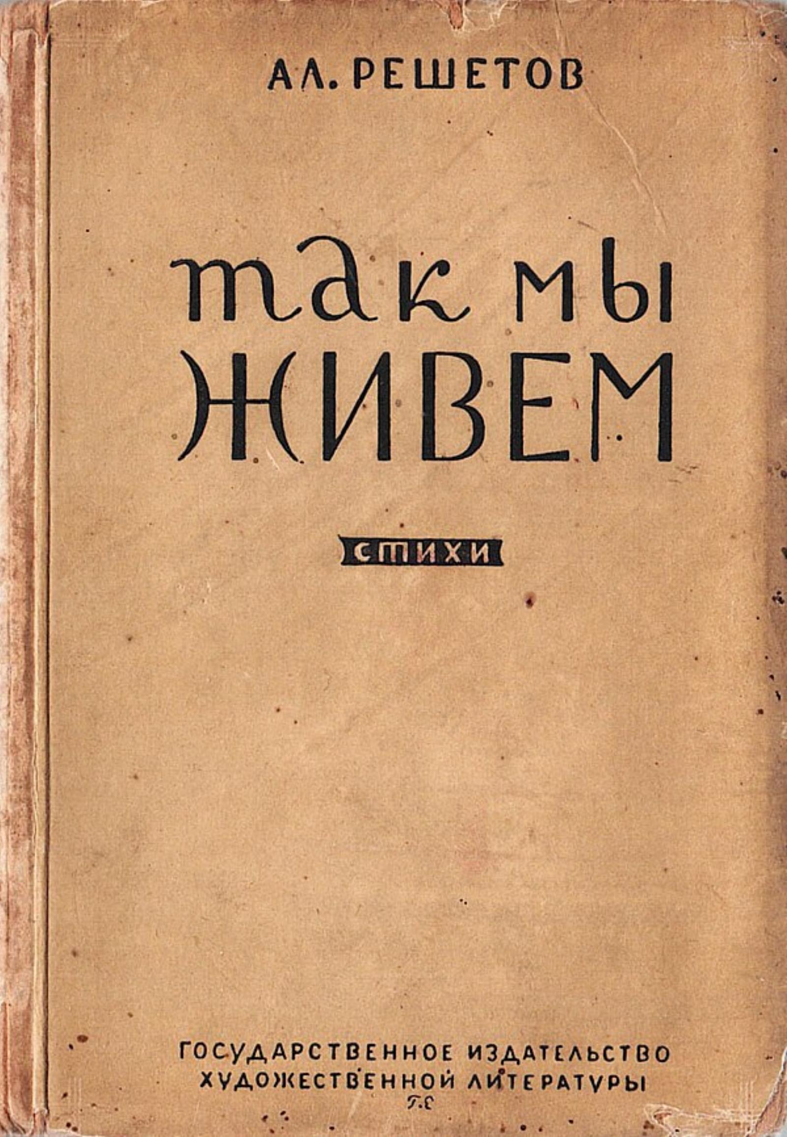 Решетов, Александр Ефимович (1909–1971). Так мы живем : Стихи / Александр Решетов ; Обложка: Л. Г. Епифанов. — Москва ; Ленинград : ЛАПП — Огиз — Гос. изд-во худ. лит-ры, 1931 (Л. : тип. им. Володарского). — 87 с.; 16?11 см. — (Современная пролетарская литература).
