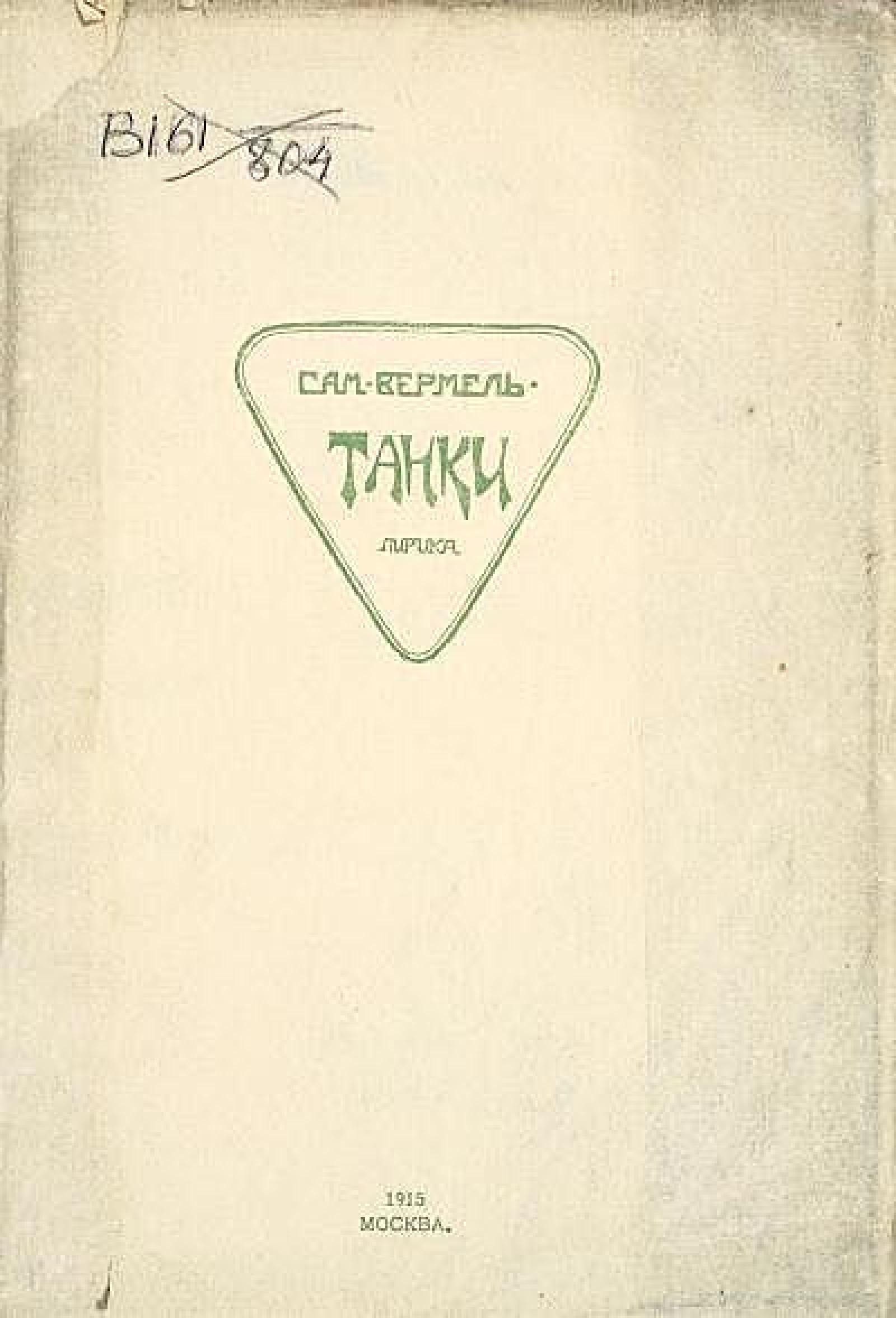 Вермель, С. М. Танки. Лирика / Сам. Вермель, рис. Д[авида] Б[урлюка]. М.: Издание «Студии», 1915. 48 с.: ил. 20?13,5 см.
