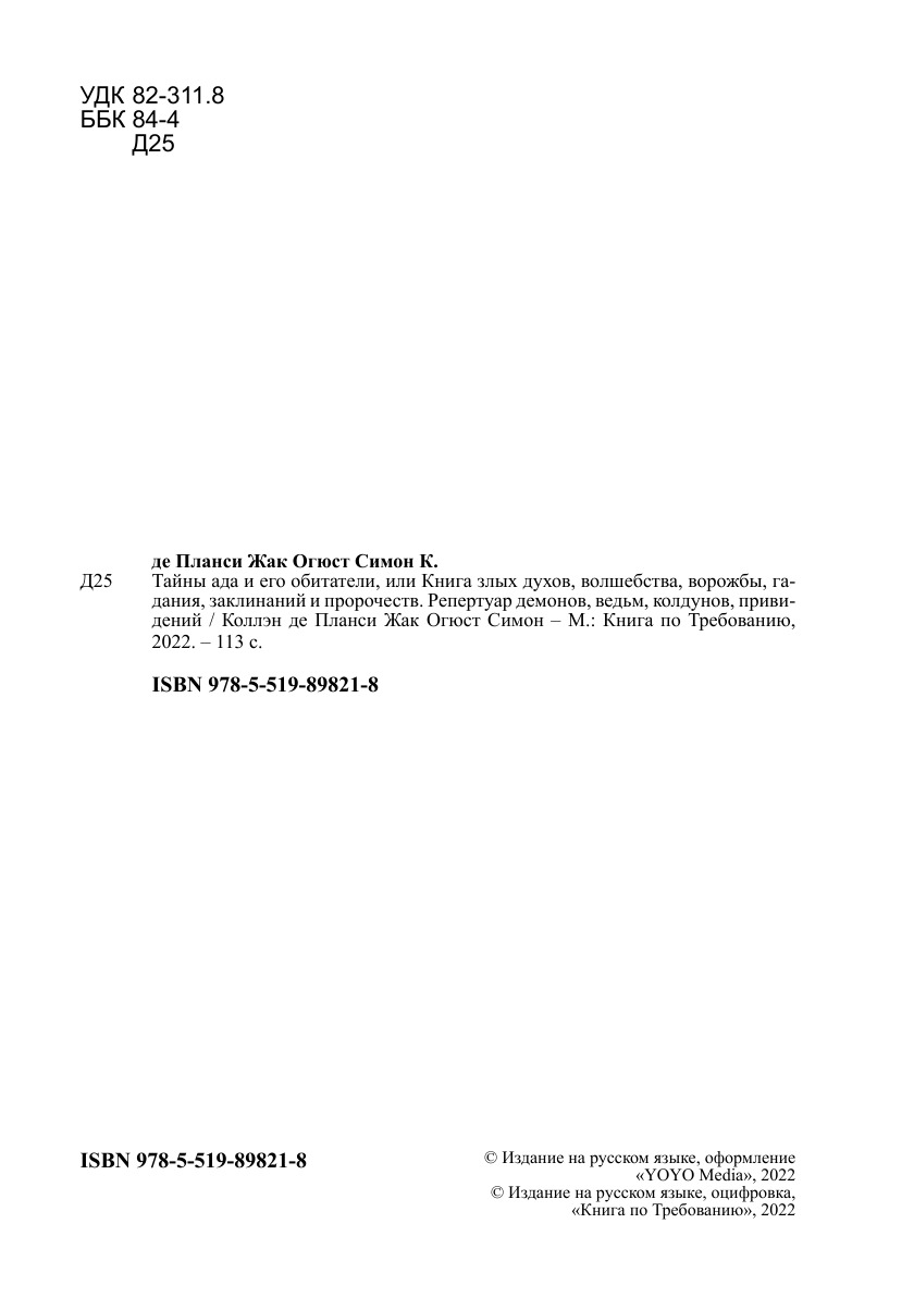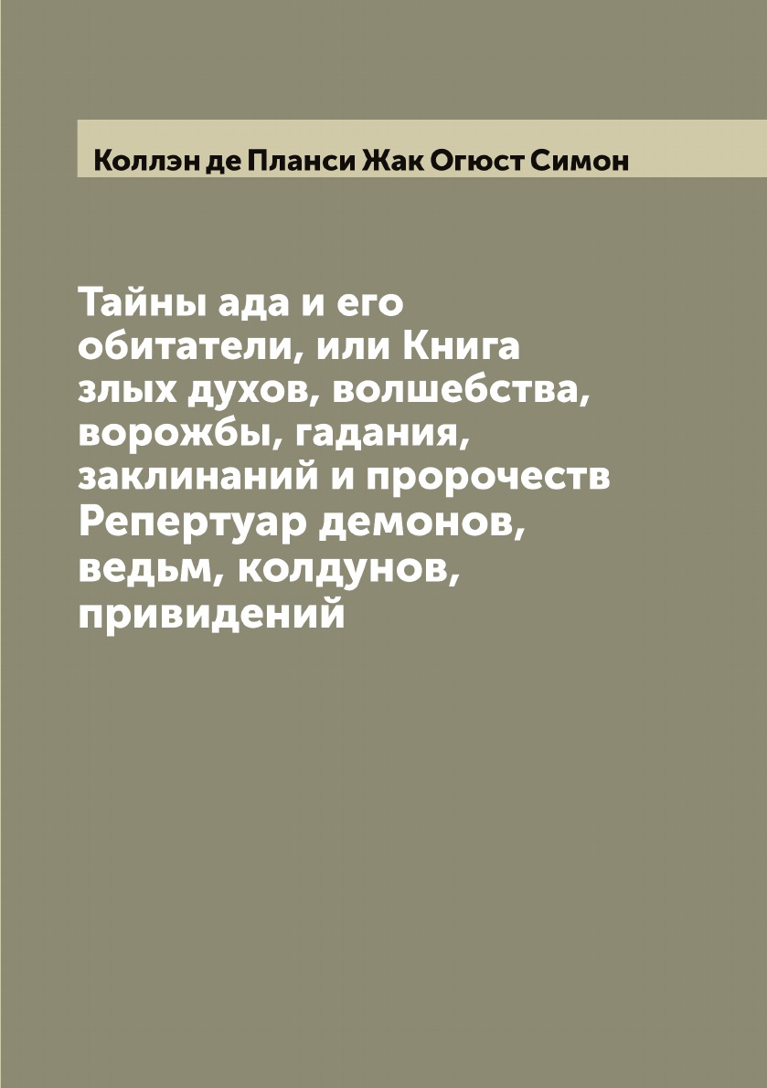 Печатная книга «Тайны ада и его обитатели, или Книга злых духов, волшебства, ворожбы, гадания, заклинаний и пророчеств. Репертуар демонов, ведьм, колдунов, привидений» в мягкой обложке, язык - русский. В книге 113 страниц, она напечатана на белой офсетной бумаге плотностью 80 г/м². Формат издания — 148x210 мм. Все книги аккуратно упаковываем в прочный трёхслойный непрозрачный картонный конверт.