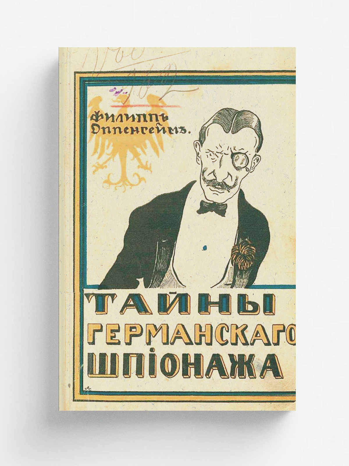 Оппенгейм, Эдвард Филипс (1866–). Тайны германского шпионажа : Роман из истории герм. шпионажа в Англии / Филипп Оппенгейм; Пер. П. Потемкина. — Петроград : тип. «Виктория», 1915. — 246 с.; 20.