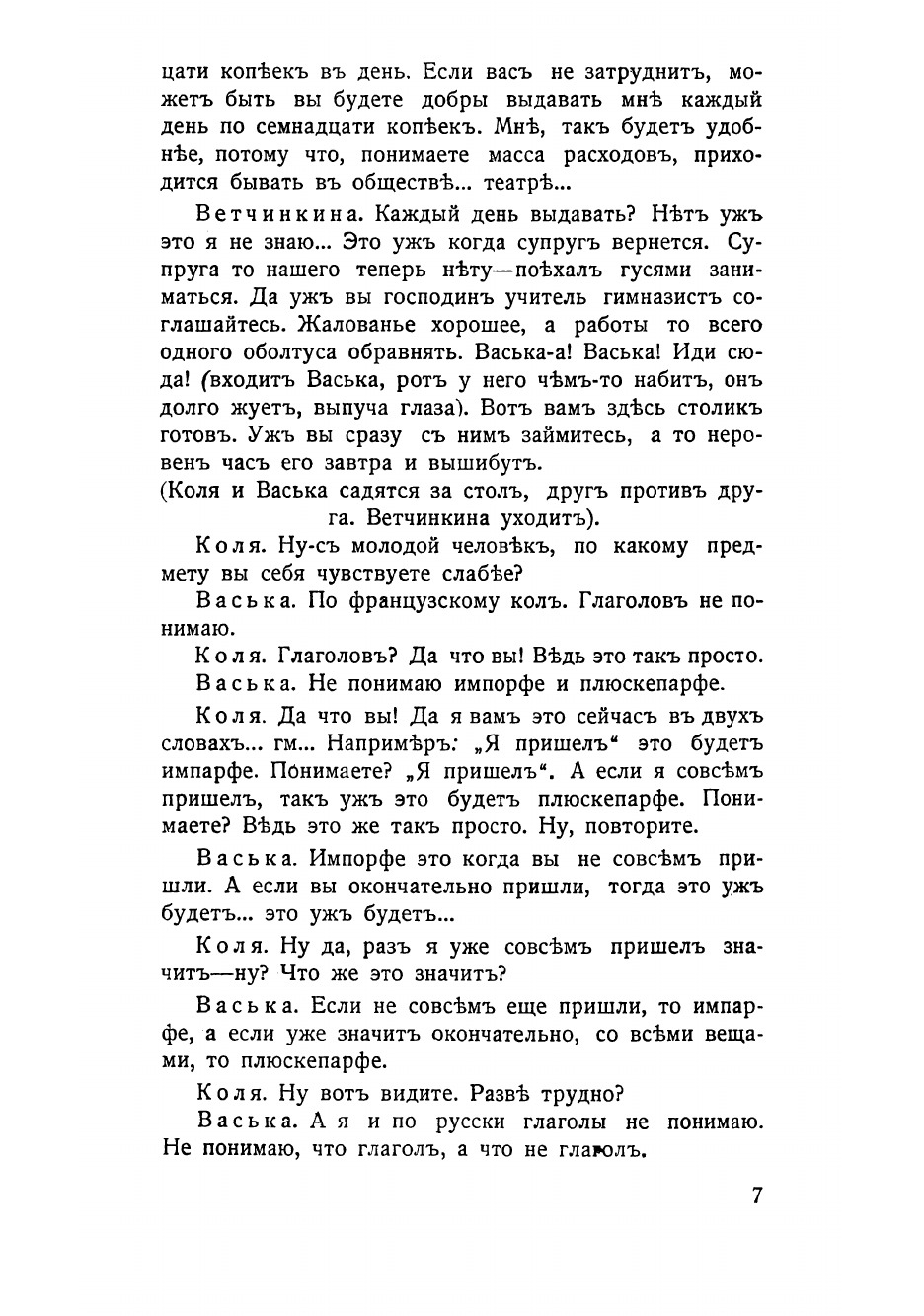 Плюскепарфе; Наказанный зверь; Небольшой талант; Четвертое "не"; Сатир Кукин; Белое боа; Покаянное; Свой человек; В стерео-фото-кине-мето-скопо-био-фоно и прочее графе; После турне; Сказка про кобылью голову