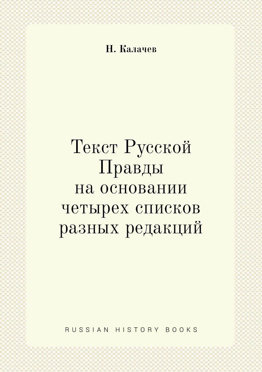 Печатная книга «Текст Русской Правды на основании четырех списков разных редакций» в мягкой обложке, язык - русский. В книге 61 страниц, она напечатана на белой офсетной бумаге плотностью 80 г/м². Формат издания — 148x210 мм. Все книги аккуратно упаковываем в прочный трёхслойный непрозрачный картонный конверт.