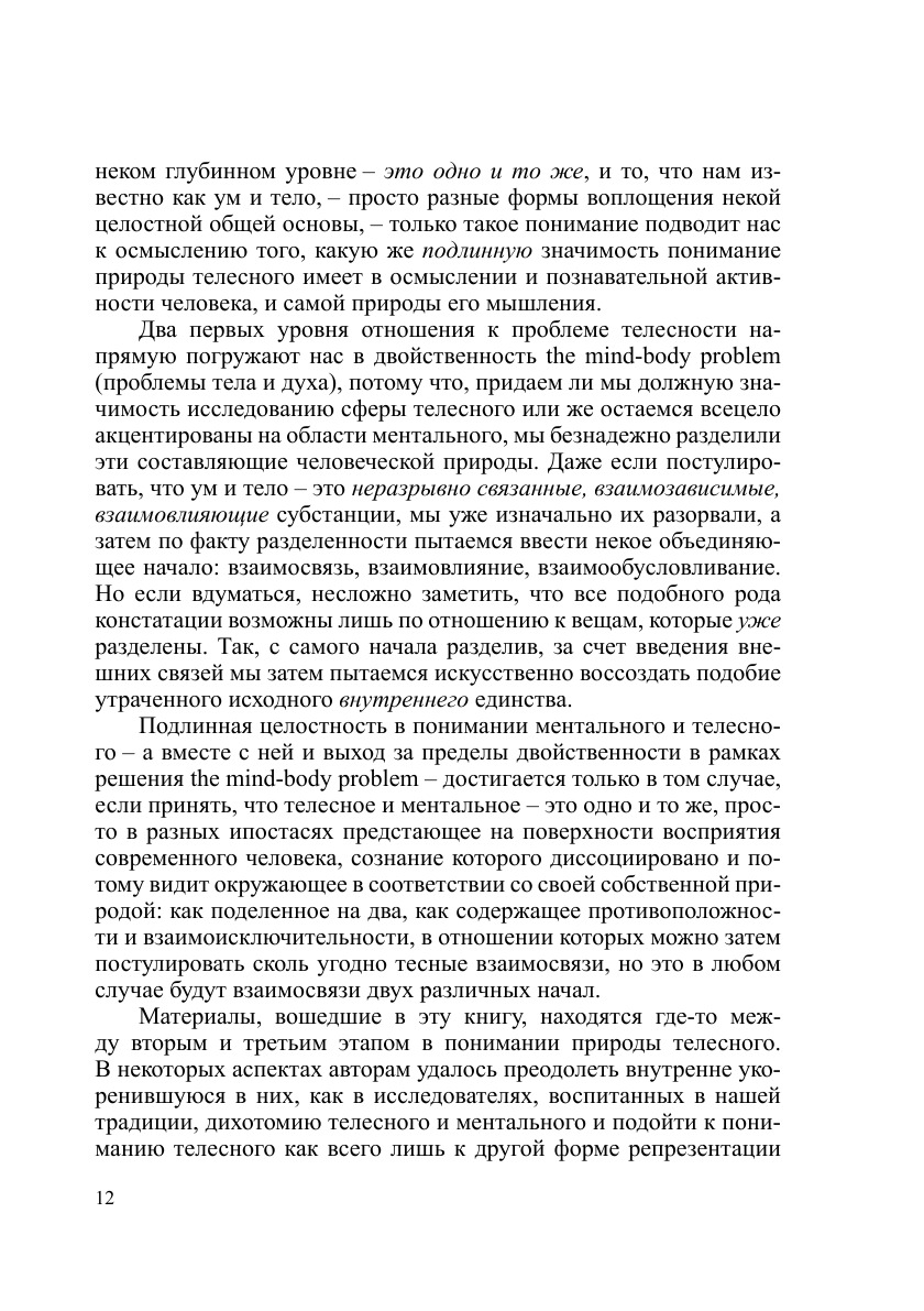 В коллективной монографии затрагиваются вопросы, связанные с выявлением телесных детерминант познания, жизни и духовной деятельности человека. Показано, что он как существо мира средних размерностей (мезокосма) организует свою картину мира в соответствии с параметрами собственной телесности, что определяет основные направляющие его мыслительной и преобразующей активности. Те же, в свою очередь, оказывают обратное влияние на функционирование телесности, на новом витке задавая специфику познавательной деятельности. На основе теоретических разработок формулируются практически значимые рекомендации, позволяющие улучшить качество жизни современного человека.