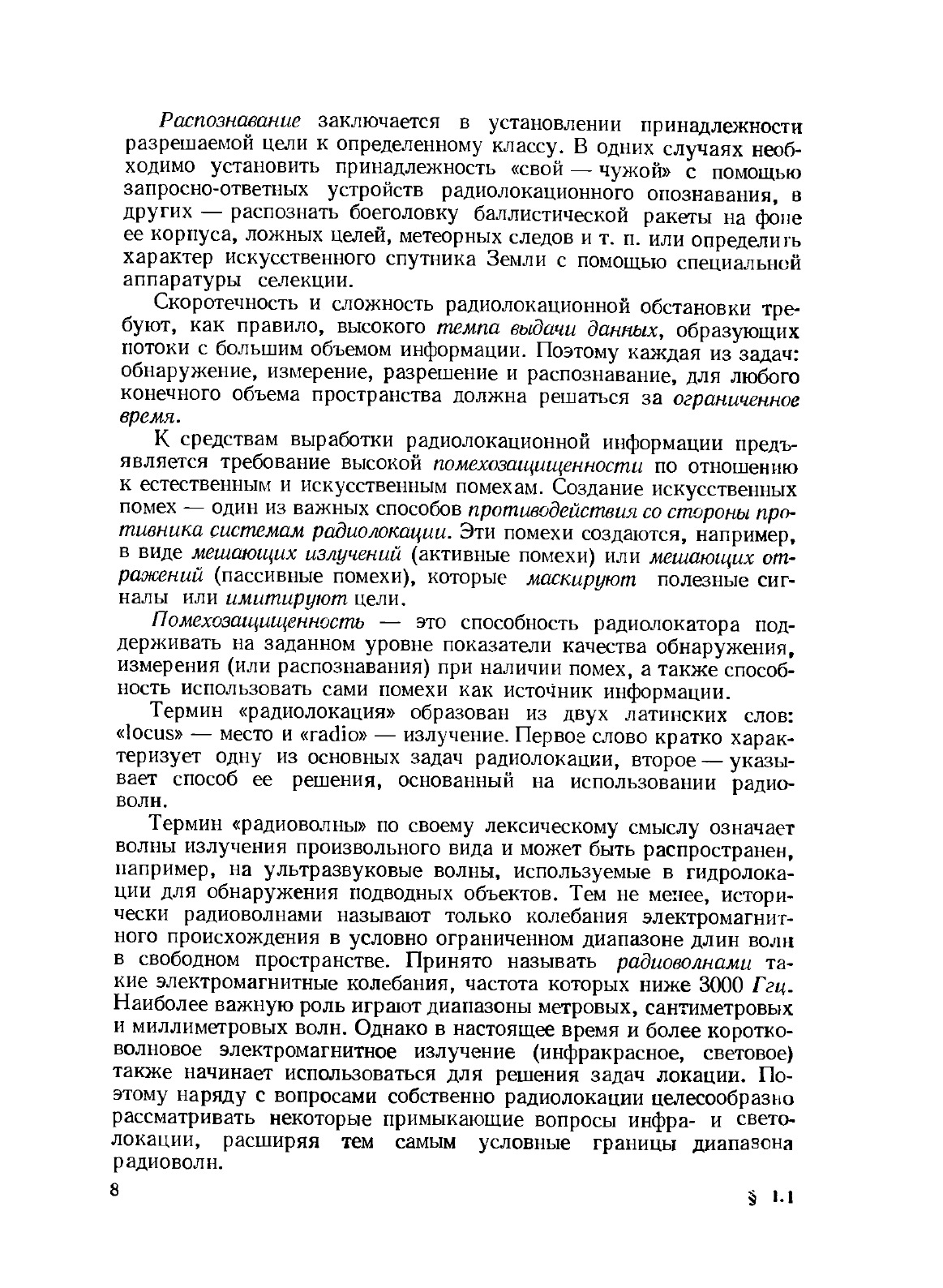 Книга представляет учебное пособие для радиотехнических факультетов высших учебных заведений, готовящих специалистов по радиолокации. Его особенностью является использование статистических методов анализа как единой базы курса. Даются принципы построения и теория устройств оптимального обнаружения при наличии помех; рассматриваются методы получения радиолокационной информации с учетом достижений в области оптимальной обработки сложных радиолокационных сигналов, закономерностей вторичного излучения и распространения радиоволн. Приводится большее число примеров, позволяющих читателю быстрее усвоить главные вопросы теории и ее приложения. Наряду с этим приведен набранный петитом дополнительный материал, рассчитанный на более углубленное изучение отдельных вопросов курса. Книга может быть полезна инженерам и аспирантам радиолокационного профиля, а также специалистам смежных областей, занимающихся вопросами обработки широкополосных сигналов.