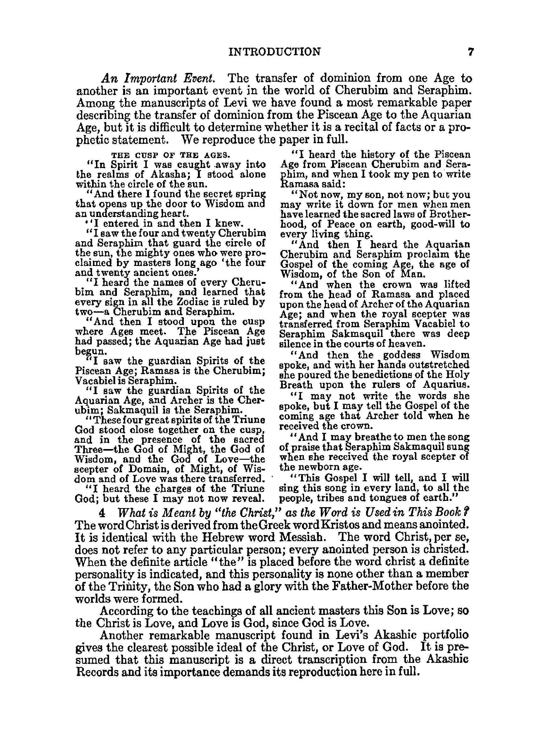 The aquarian gospel of Jesus the Christ. The philosophic and practical basis of the religion of the aquarian age of the world and of the church universal, transcribed from the book of God's remembrances, known as the Akashic records