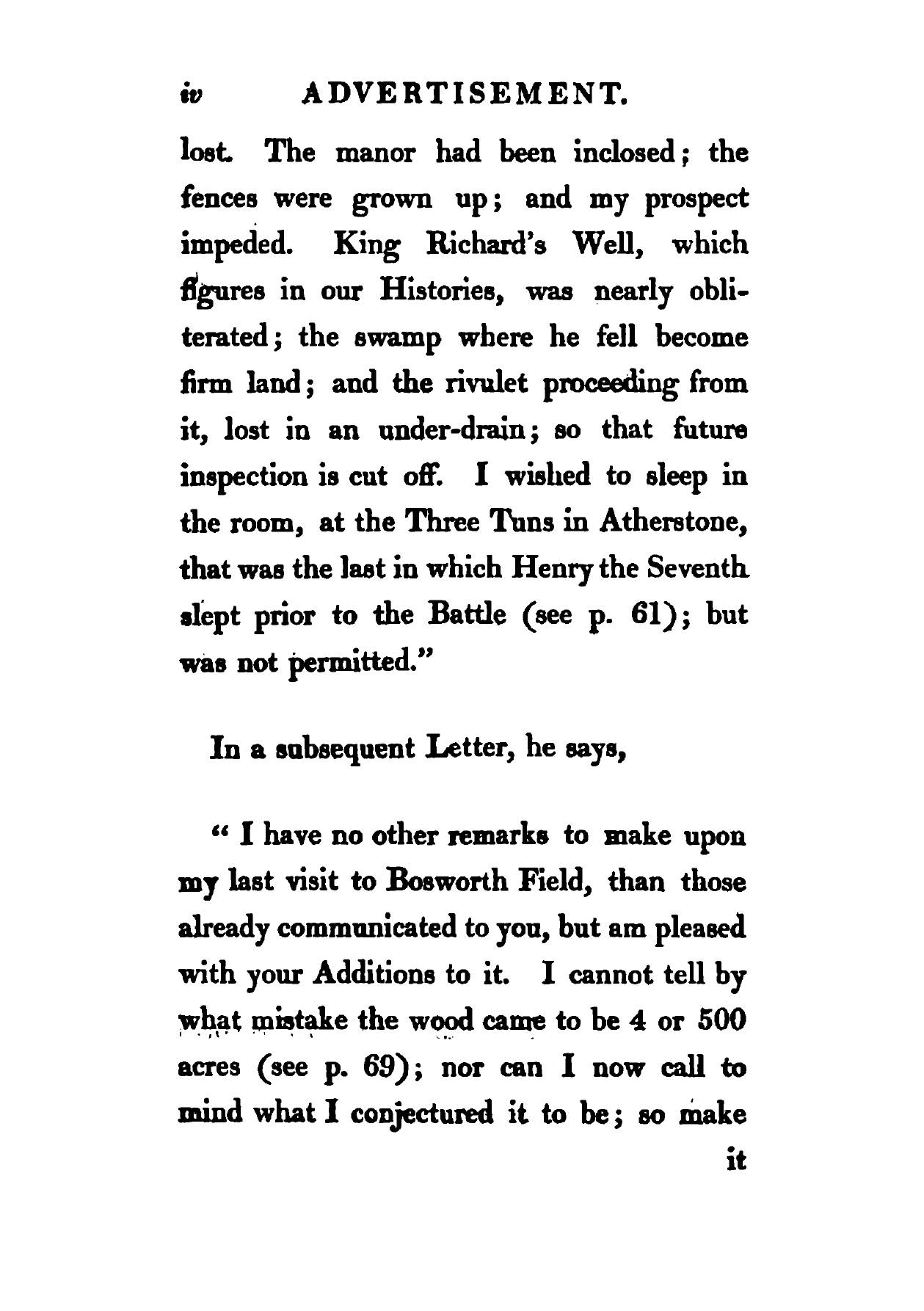 The battle of Bosworth Field : between Richard the Third and Henry Earl of Richmond, August 22, 1485 : wherein is described the approach of both armies : with plans of the battle, its consequences, the fall, treatment, and character of Richard : to which is prefixed, by way of introduction, a history of his life till he assumed the regal power